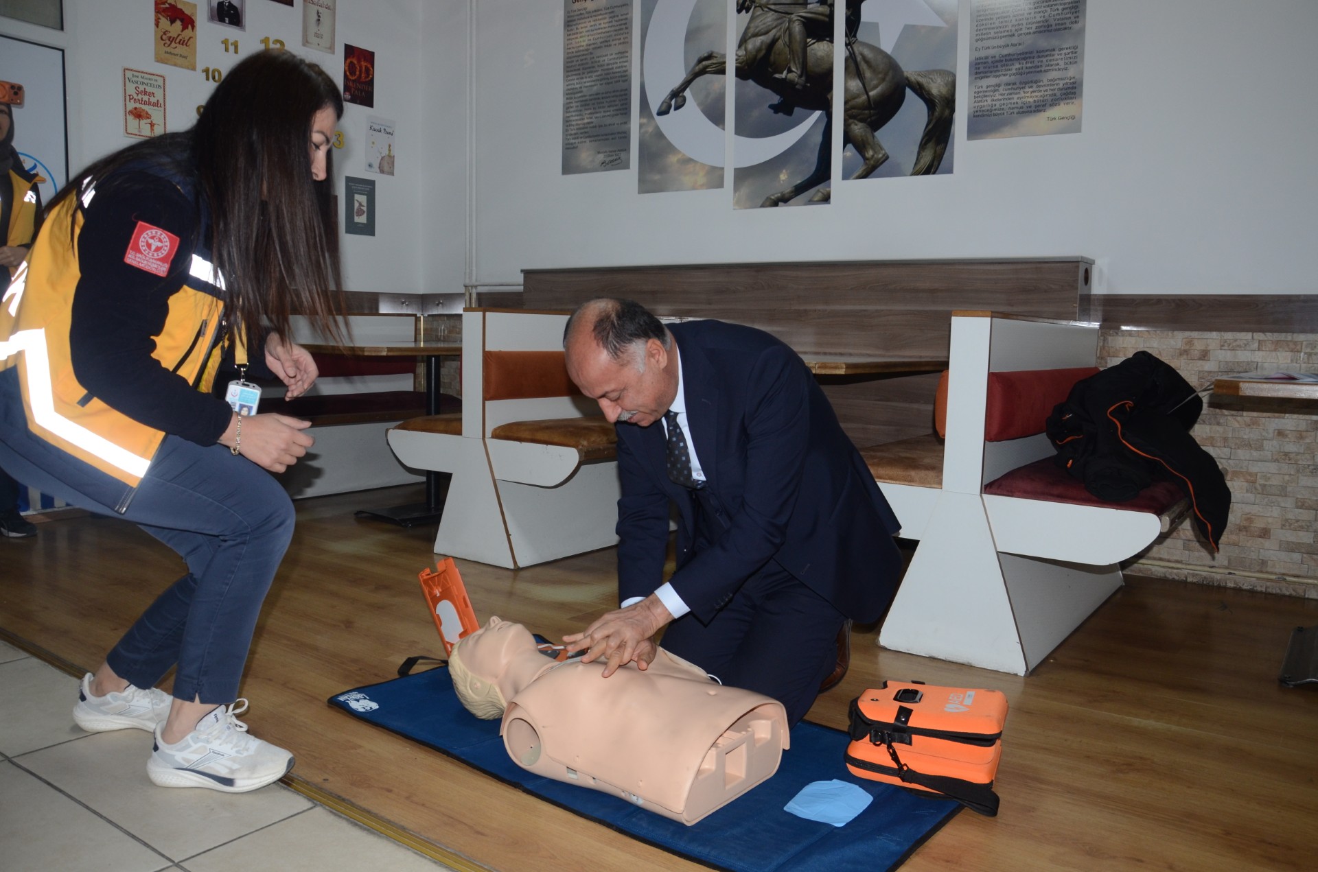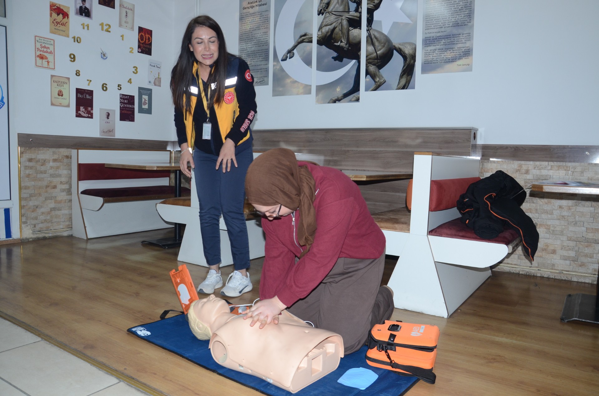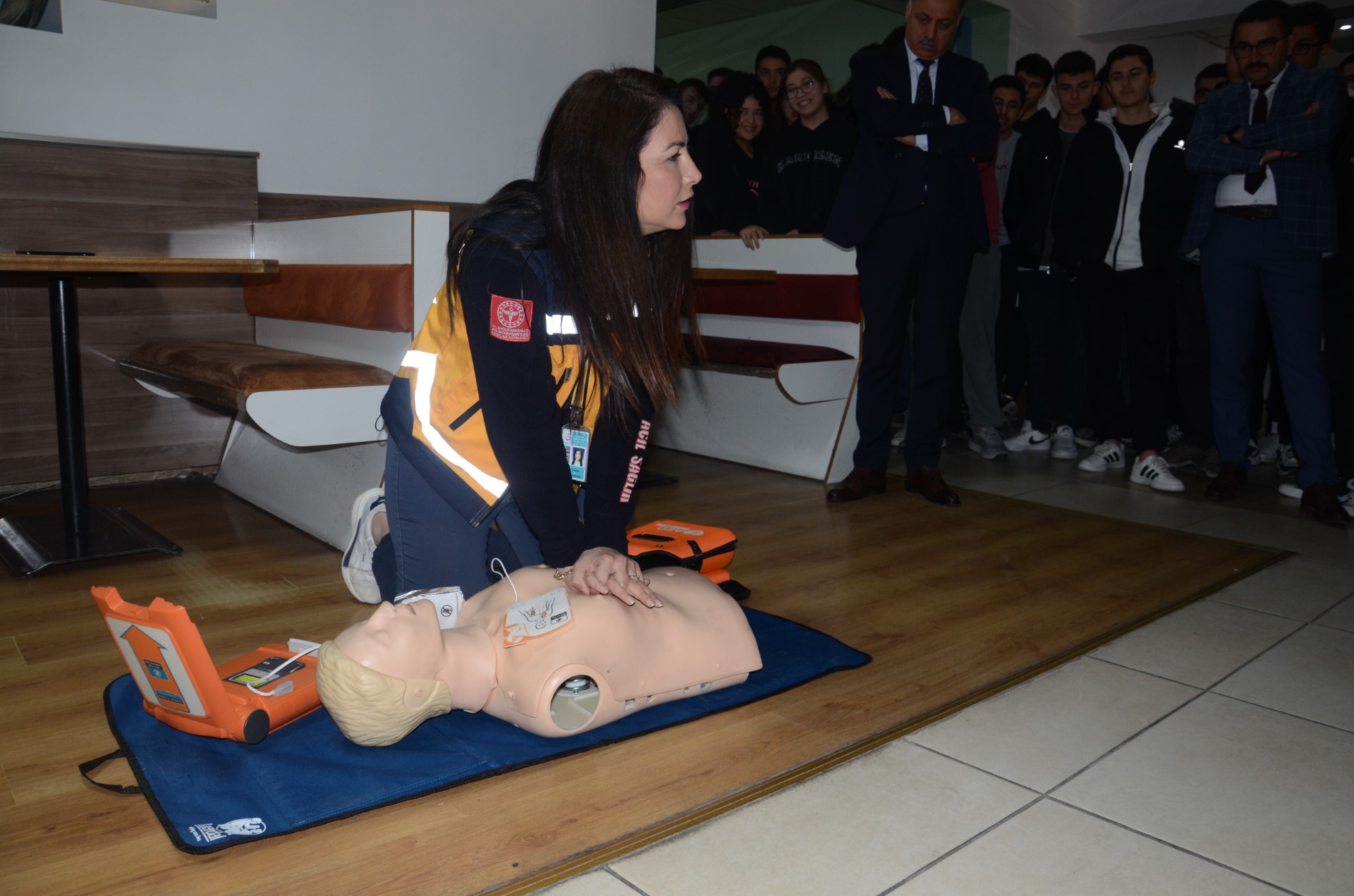 Sağlık Müdürlüğü ekipleri Kardelen Eğitim Kurumlarında “Hayat kurtarma zincirinin ilk ‘halk’ası ol!” ve “Kalp durduğunda siz durmayın, OED kullanın” temasıyla bilgilendirmede bulundu.