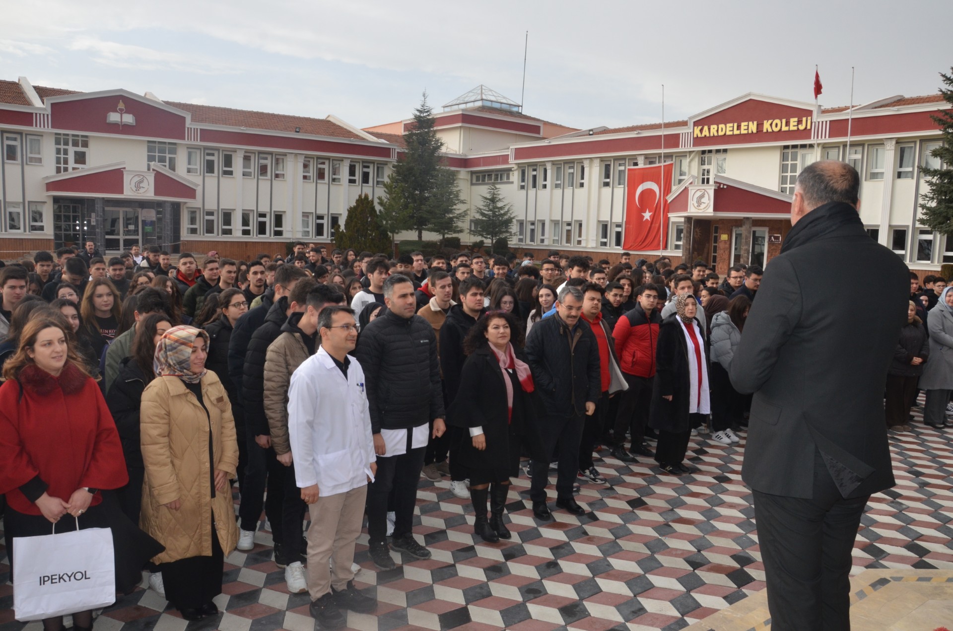 Törenin ardından geçtiğimiz günlerde bayrağımıza yapılan çirkin saldırı nedeniyle öğrenciler hep birlikte “Bayrak” şiirini okudu.