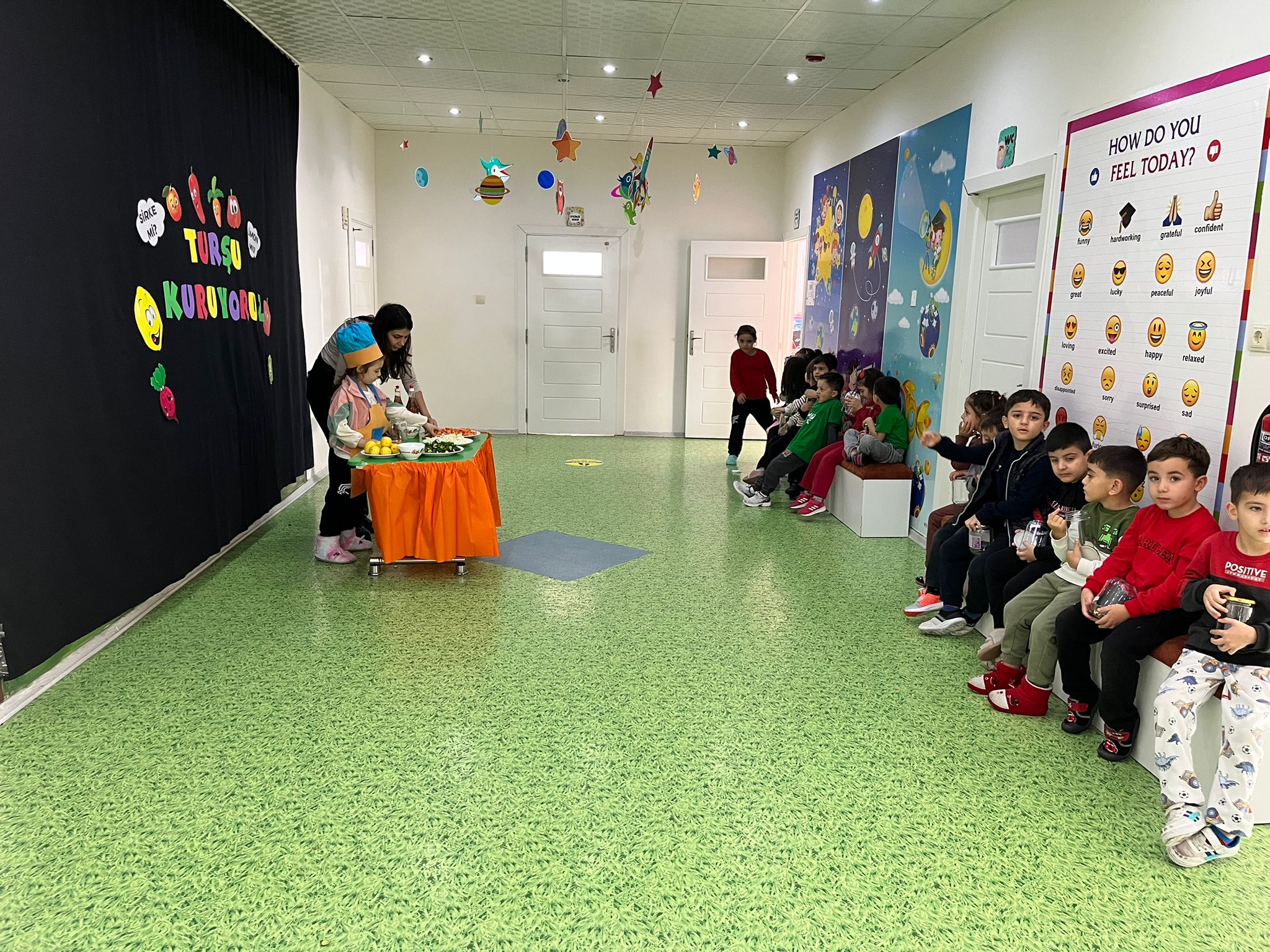 Kış aylarının yaklaştığı şu günlerde, soğuk havalarının vazgeçilmezi ve aynı zamanda şifa kaynağı olan turşuları, minik öğrenciler kendi elleriyle kurdu. Sınıf öğretmenleri eşliğinde turşu kuran minik eller, hem eğlendi hem de öğrendi. Etkinlik boyunca Kardelenli minikler keyifli bir vakit geçirdi.