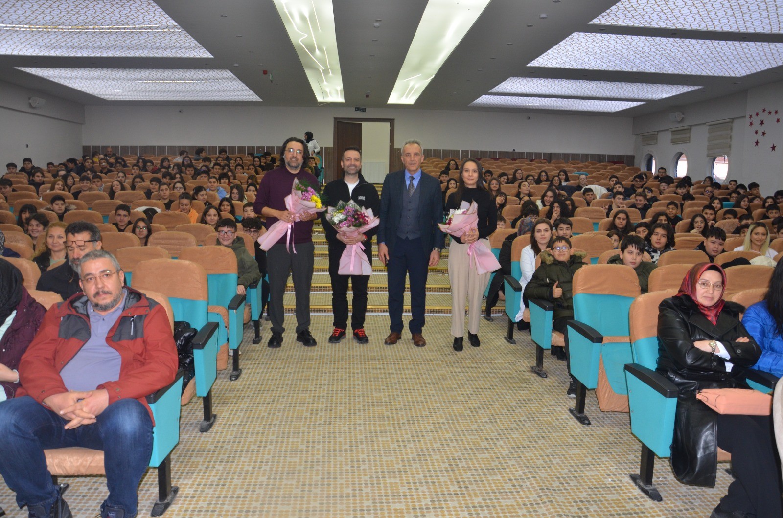 Kardelen Eğitim Kurumları konferans salonunda düzenlenen ve velilerin de katıldığı seminerde matematik yazarı Serkan Kebenç, eğitim koçu Osman Sarı ve fen bilimleri yazarı Merve Er Aslan öğrencilerle buluştu.