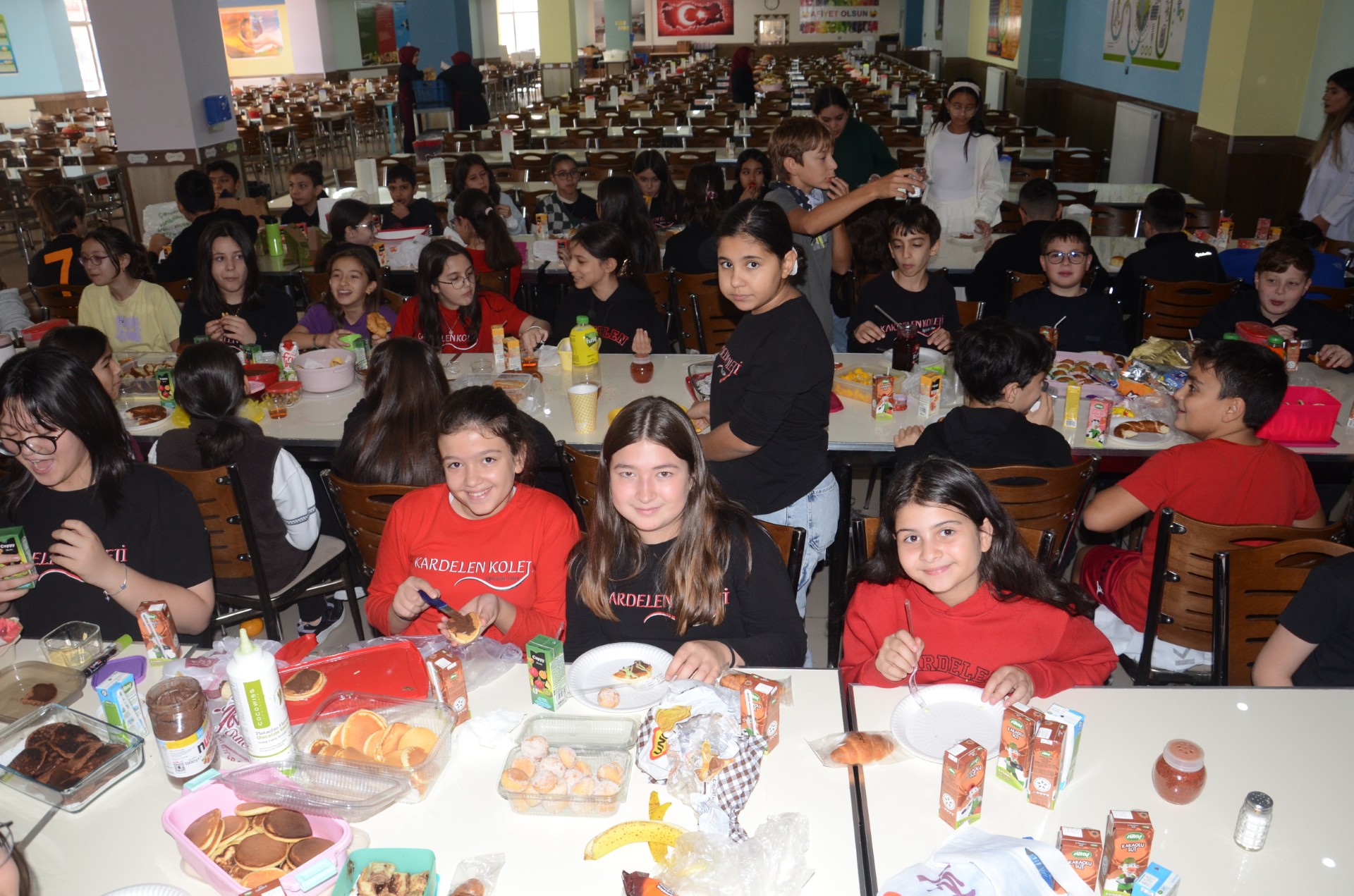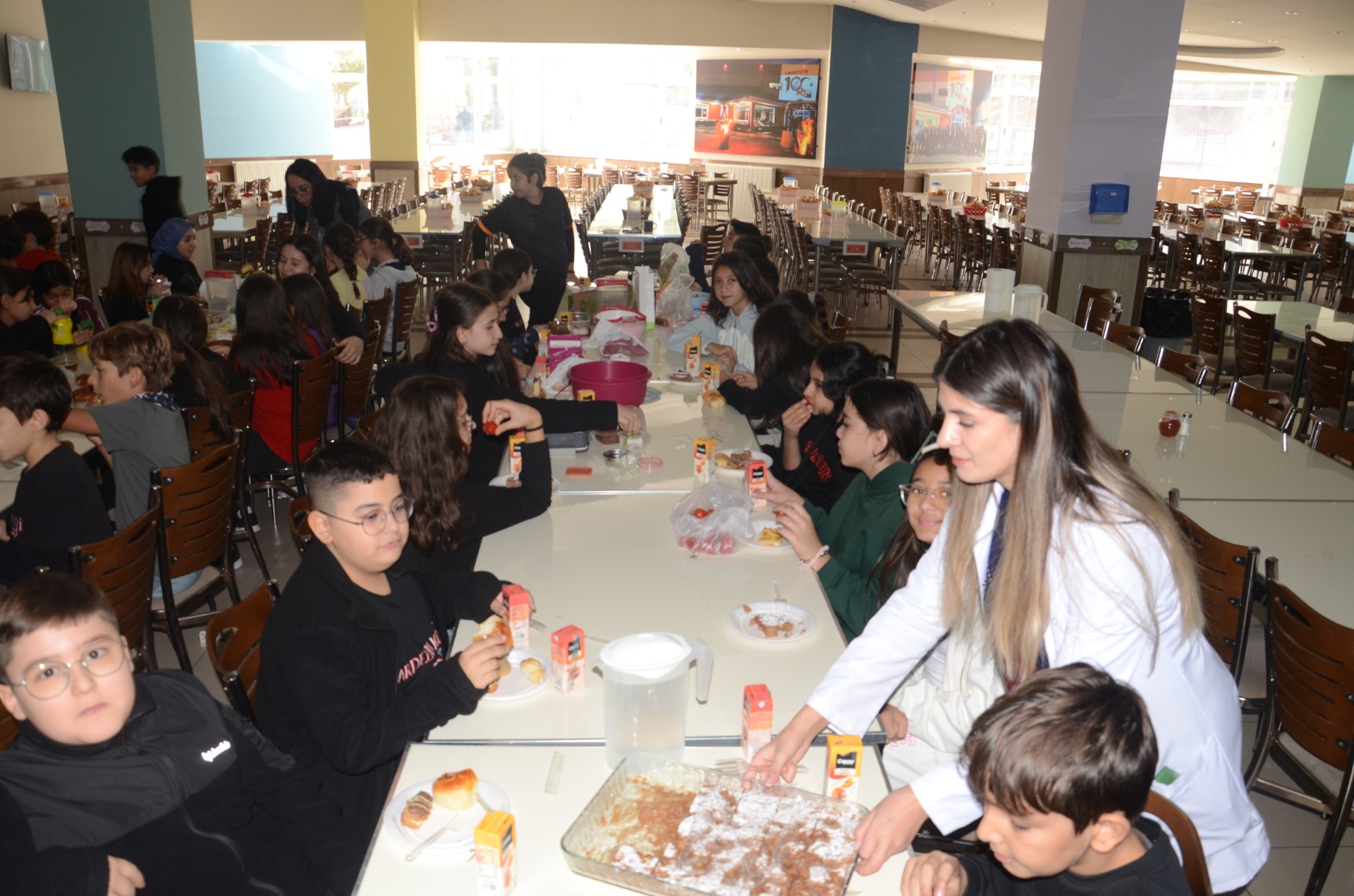 Yiyecekleri evde aileleriyle birlikte hazırlayan öğrenciler yemekhanede buluşarak getirdikleri yiyecekleri hep birlikte yedi.