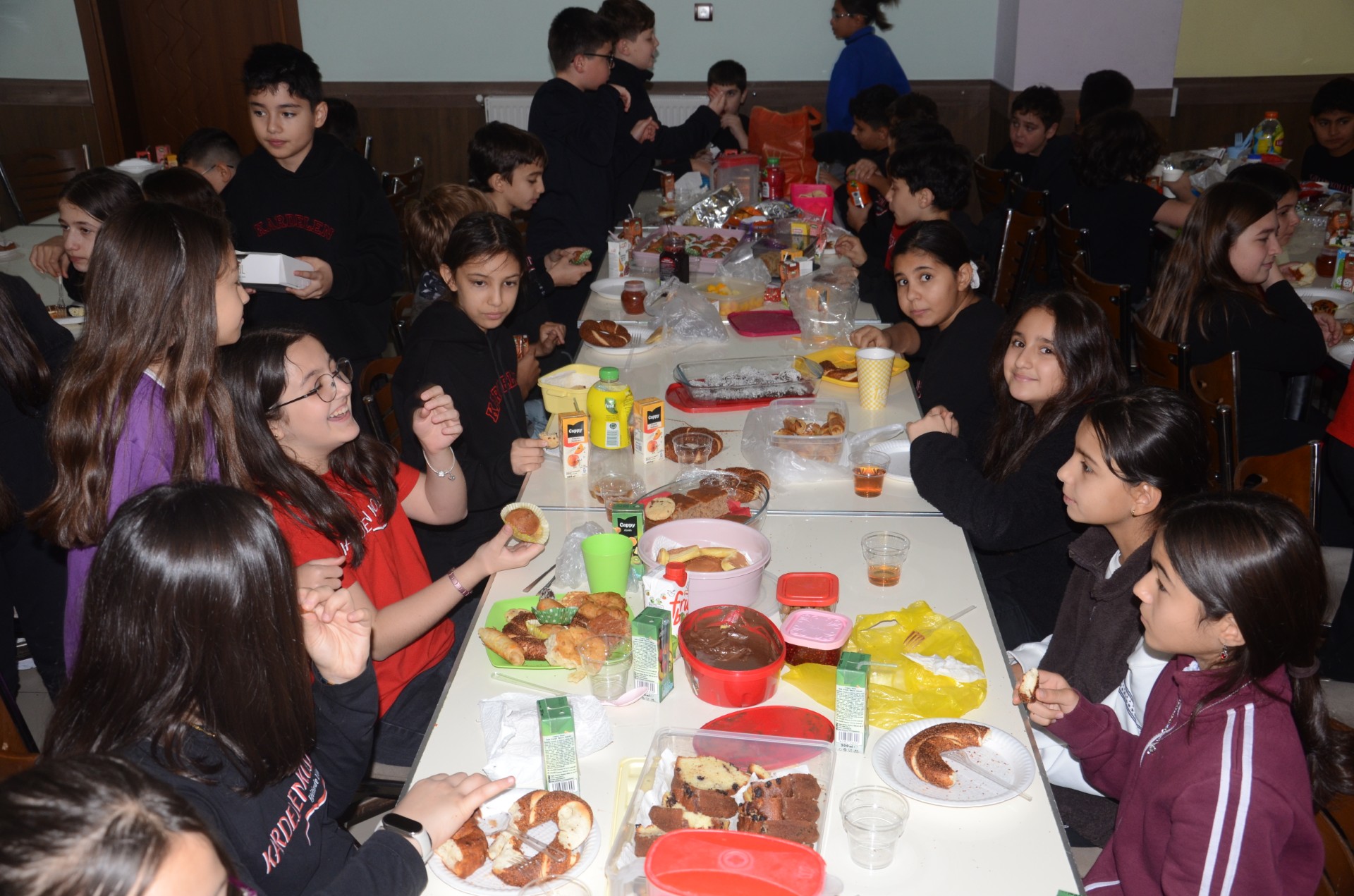 Her öğrenci kendi getirdiği yiyecek ve içeceği arkadaşlarıyla paylaştı.