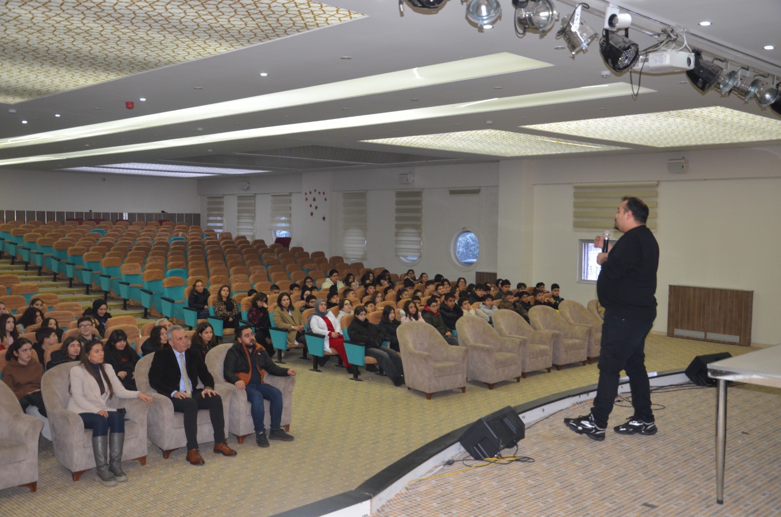 Konferans salonunda düzenlenen seminerde, öğrencilere sınavlarda başarıyı artırmanın yolları anlatıldı.