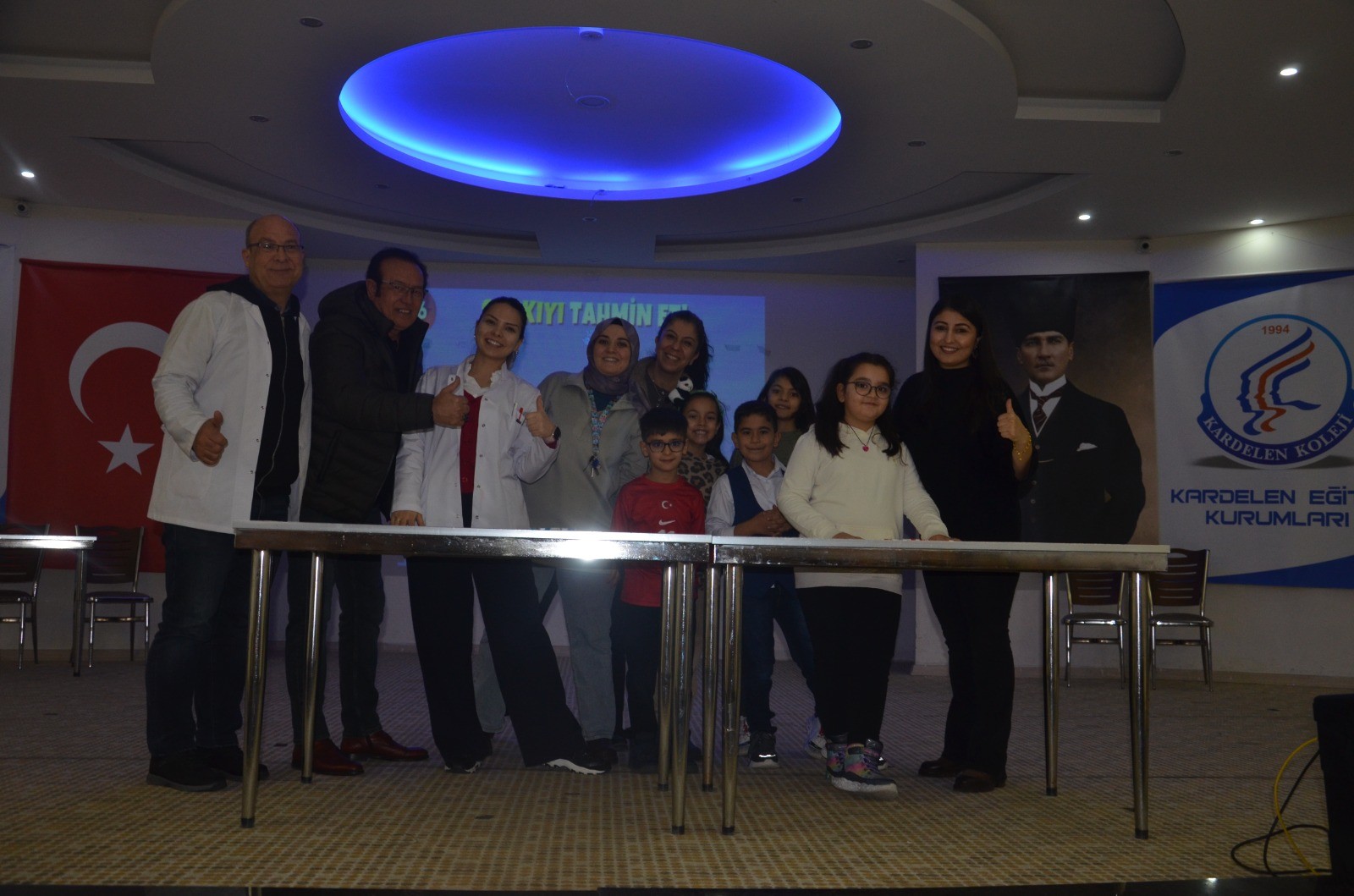 Daha sonra öğretmenler oluşan koro şarkı söyledi. Öğrenciler şarkı eşliğinde gönüllerinde dans etti. Fen öğretmeni yaptığı deneyle öğrencileri büyüledi. Öğrenciler yapılan deneyi dikkatle izledi. İngilizce öğretmenleri de sahne alarak birlikte düet yaptı.