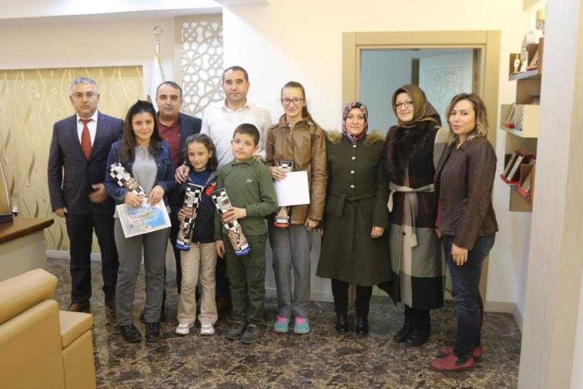 Ziyarete İlkokul Müdürü Suat Uçar, Ortaokul Müdürü İrfan Açıkgöz, öğretmenler ve dereceye giren öğrenciler katıldı. Başarılı öğrencilere satranç takımı takdim eden Başkan Elma, idarecileri ve öğretmenleri tebrik ederek, “Okullarımız idarecilerinden öğretmenlerine kadar özveriyle çalışıyor. Öğrencilerimizin başarıları ise bizleri gururlandırıyor” dedi.