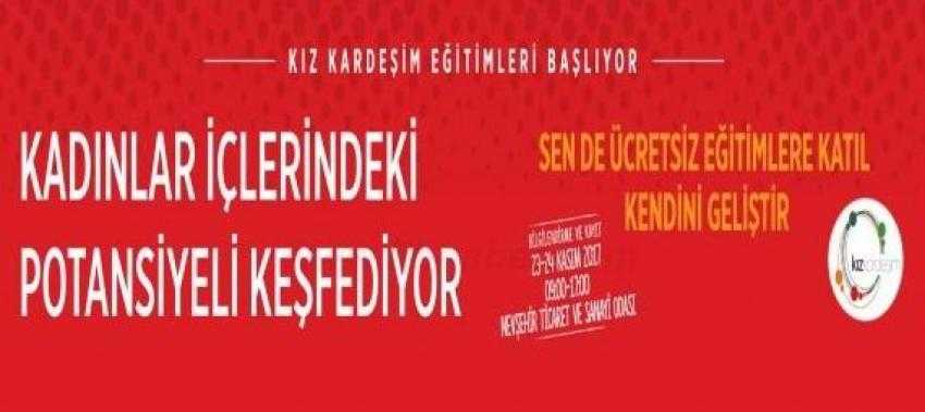 Bugüne kadar Türkiye’nin 15 şehrinde yaklaşık 2000 kadına ulaşan ‘Kız Kardeşim’ projesinin 2017 yılı eğitimleri, Nevşehir ile devam ediyor. Eğitimler, Nevşehir Ticaret ve Sanayi Odası ve Nevşehir İl Kadın Girişimciler Kurulu ev sahipliğinde, Coca-Cola Türkiye ve Anadolu Vakfı destekleri ve Boğaziçi Üniversitesi Yaşamboyu Eğitim Merkezi (BÜYEM) işbirliğiyle hayata geçiriliyor. 27 Kasım-7 Aralık tarihleri arasında gerçekleştirilecek olan eğitimlere 18-55 yaşları arasındaki okuryazar tüm kadınlar katılabilecek. BÜYEM’in alanında uzman eğitmenlerinin vereceği ücretsiz eğitimlere katılmak isteyen kadınlar, 23-24 Kasım 2017 tarihlerinde Nevşehir Ticaret ve Sanayi Odası’na başvurarak, programla ilgili detaylı bilgi alıp kayıt yaptırabilecek.