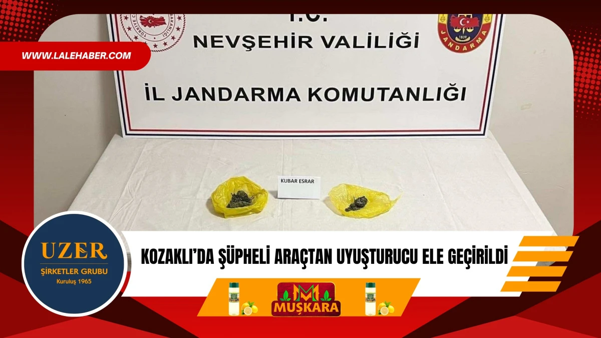 Alınan bilgilere göre, Nevşehir İl Jandarma Komutanlığı Narkotik Suçlarla Mücadele Şube Müdürlüğü ve Kozaklı İlçe Jandarma Komutanlığı ekiplerince yapılan yol kontrol uygulamasında S.Ş. idaresindeki araçta yapılan aramada 17 gram kubar esrar ele geçirildi. Şüpheli S.Ş. jandarma ekiplerince gözaltına alınırken şüpheli hakkında adli işlemlerin başlatıldığı öğrenildi.