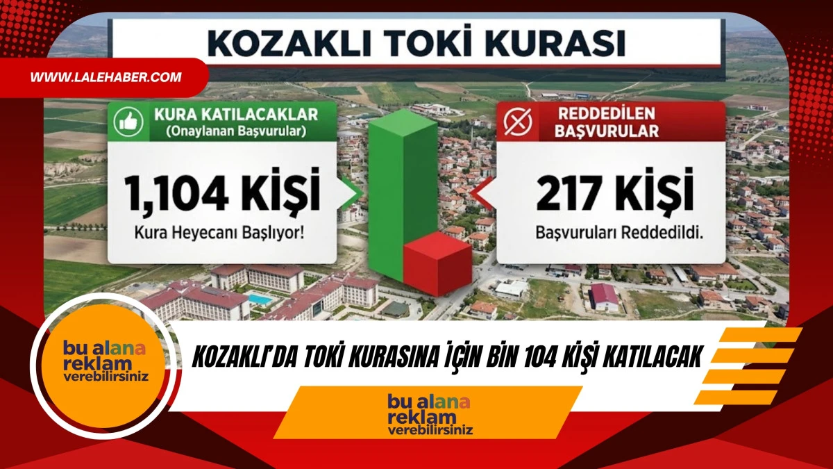 TOKİ tarafından Kozaklı ilçesine yapılacak olan 100 konutun kura çekimi 31 Ocak Cumartesi günü yapılacak. TOKİ tarafından Kozaklı ilçesine yaptırılacak olan 100 konut için bin 314 kişi başvuru yaptı. Yapılan başvurulardan bin 104 kişinin ki kabul edilirken 217 kişinin ise başvurusu kabul edilmedi