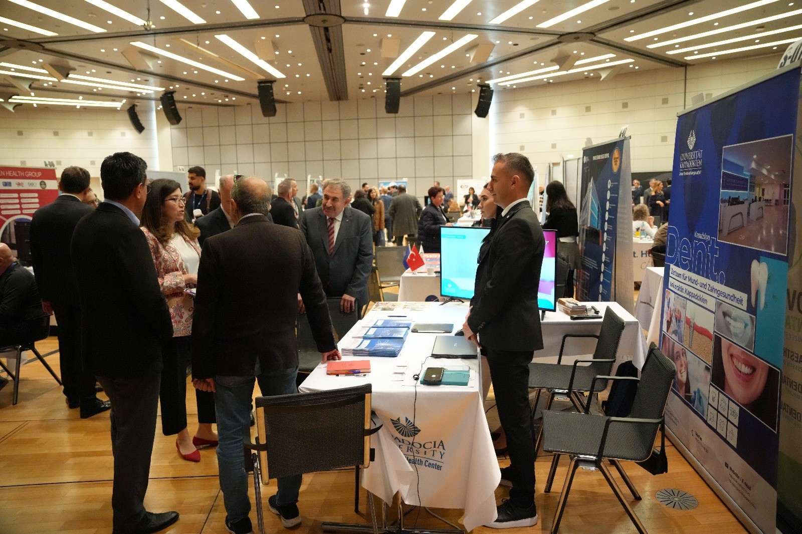 Fuar süresince sektör temsilcileri ve ziyaretçilerden yoğun ilgi gören Kapadokya Üniversitesi Ağız ve Diş Sağlığı Merkezi standını, T.C. Frankfurt Başkonsolosu İlknur Akdevelioğlu, DEİK Sağlık İş Konseyi Başkanı Mehmet Altuğ, T.C. Frankfurt Ticaret Müşaviri Murat Muştu, ALZ Grup Yönetim Kurulu Başkanı Cihat Alagöz ve ALZ Grup Genel Müdürü Server Seçer ziyaret etti. Ziyaret sırasında KÜN temsilcileriyle görüş alışverişinde bulunuldu ve sağlık turizmi alanındaki olası iş birliği fırsatları değerlendirildi.