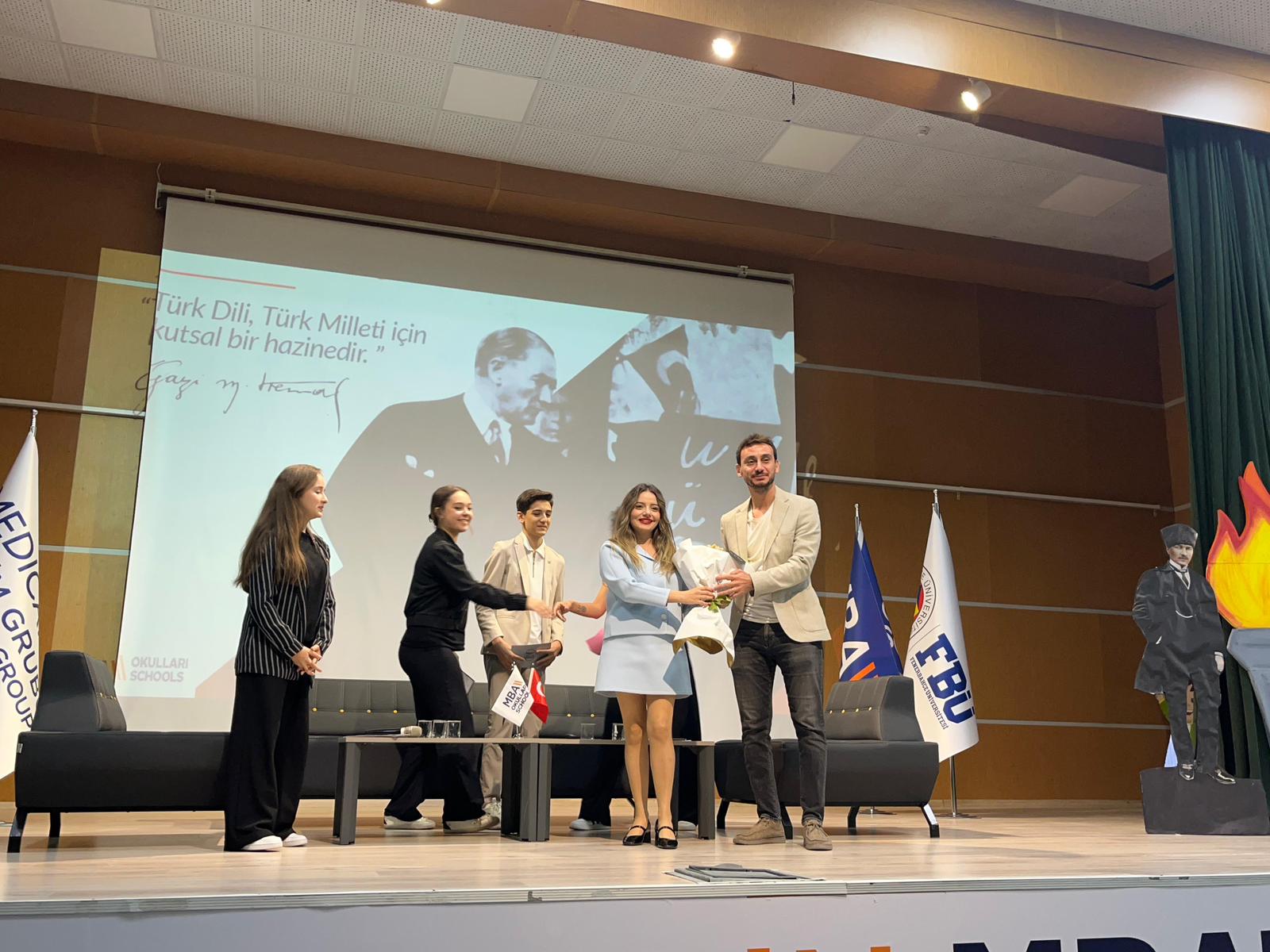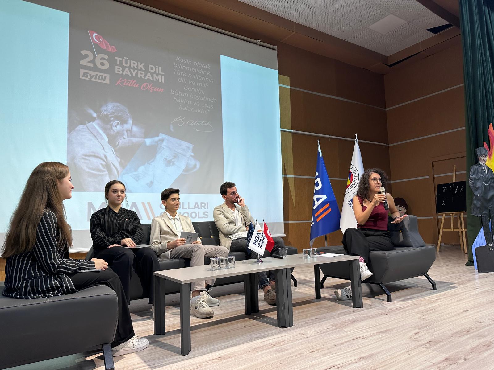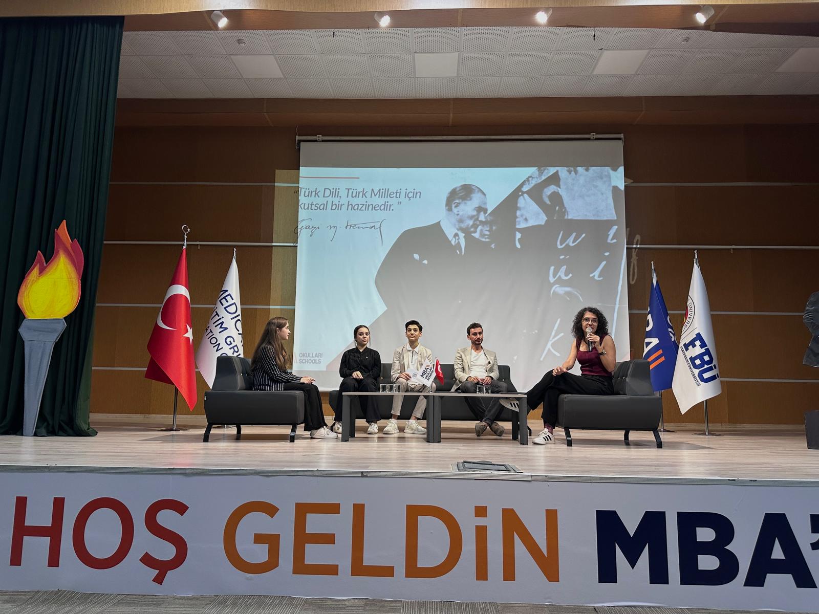 26 Eylül Türk Dil Bayramı dolayısıyla MBA Nevşehir kampüsünde düzenlenen panelde Dr. Çağla Yılmaz ve Dr. Vural Akboğa öğrenciler ile bir araya geldi. Düzenlenen panelde, dilimizin gelişimi, önemi ve gelecek kuşaklara aktarılmasının gerekliliği üzerinde paylaşımlar yapıldı.
