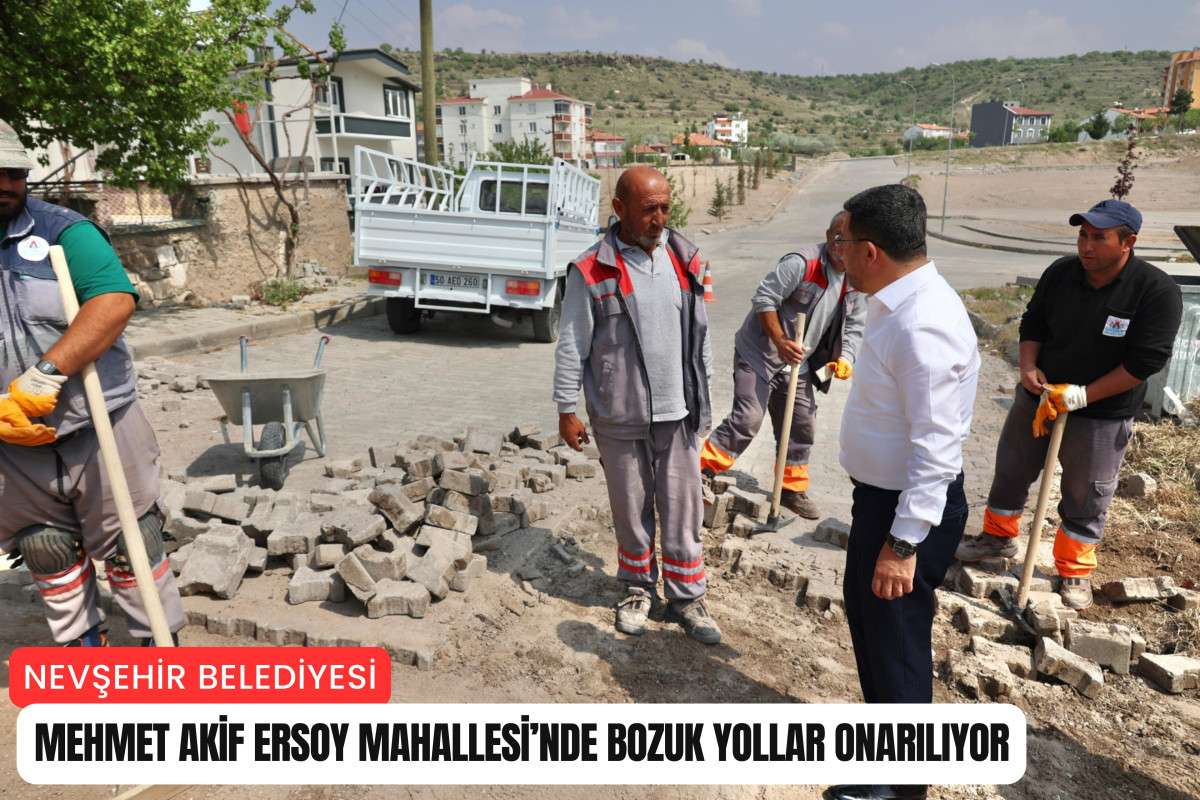 Nevşehir Belediye Başkanı Rasim Arı, Mehmet Akif Ersoy Mahallesi’nde belediye ekiplerince gerçekleştirilen yol bakım ve onarım çalışmalarını inceledi.