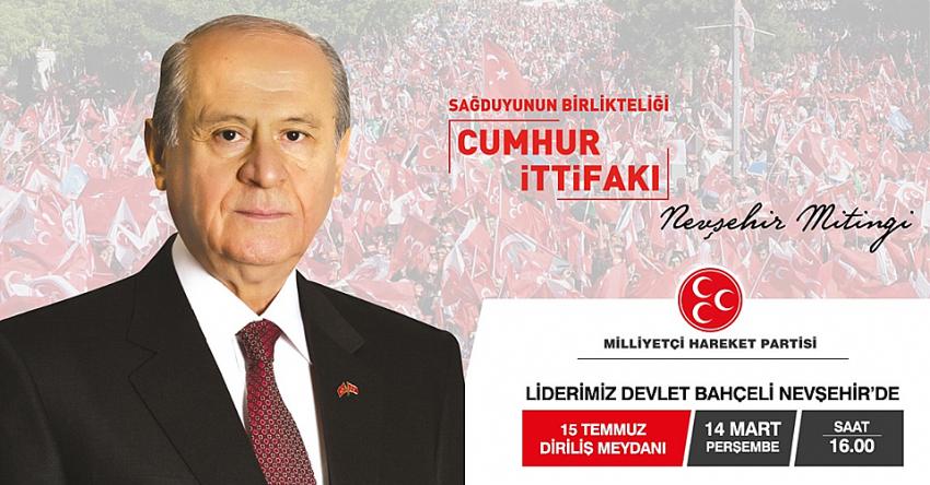Milliyetçi Hareket Partisi (MHP) Genel Başkanı Dr. Devlet Bahçeli 14 Mart Perşembe günü Nevşehir'e geliyor.