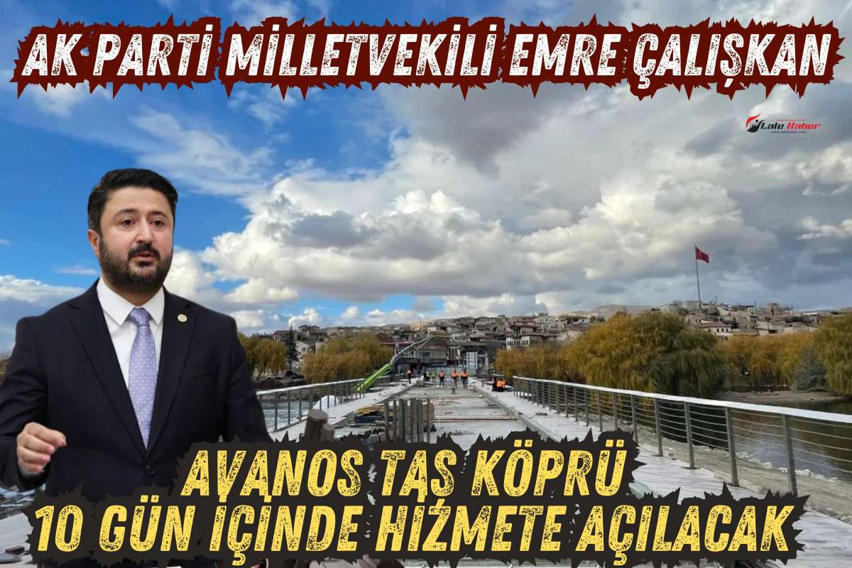 AK Parti Nevşehir Milletvekili Emre Çalışkan, Lale Haber TV ve Muşkara Gazetesi’nin ortak yayınında Nevşehir Günlüğü programına telefon bağlantısıyla katılarak Avanos tarihi taş köprüsünün 10 gün içerisinde hizmet vermeye başlayacağını açıkladı.