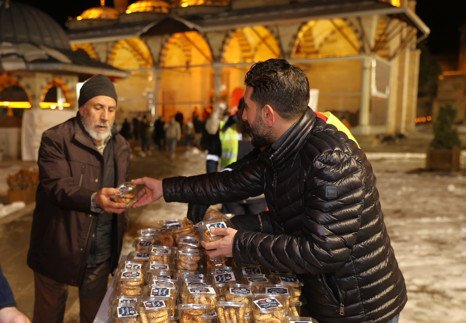 Nevşehir Belediyesi her kandilde olduğu gibi geleneği bozmayarak Miraç Kandilinde de yatsı namazı çıkışı görevli personel tarafından Nevşehir halkına kandil simidi ve şerbet dağıttı.