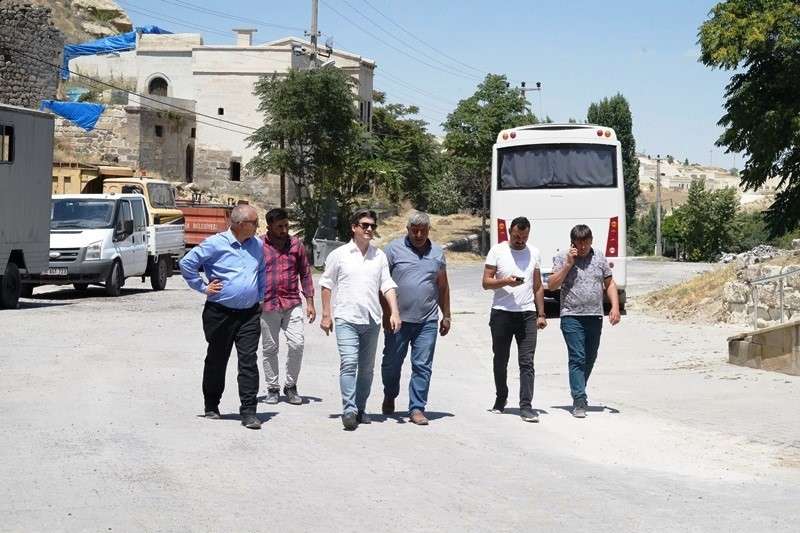 Kaymakama incelemeler esnasında KAPHİB (Kapadokya Turizm Altyapı Hizmet Birliği) Müdürü Levent Ak ve Mustafapaşa köyü muhtarı Gültekin Kan eşlik ettiler.