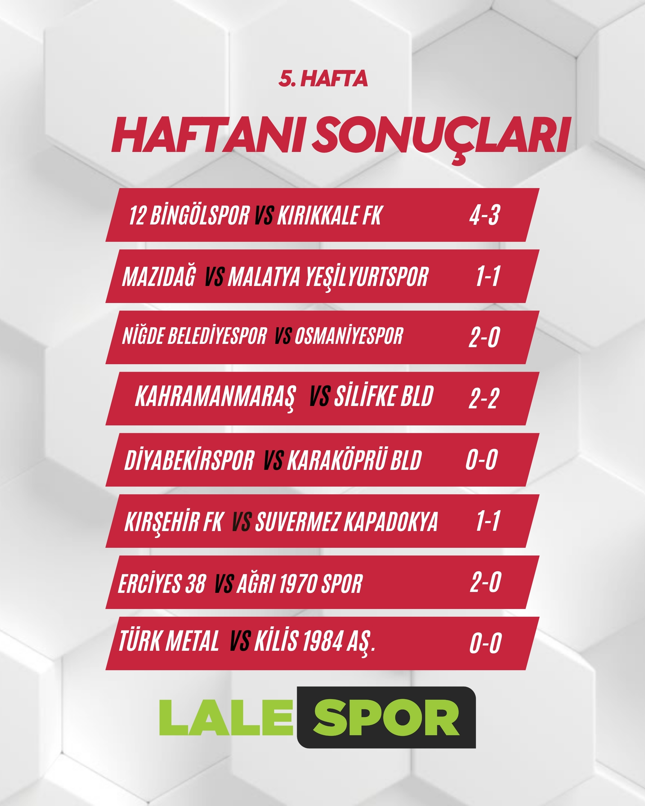 Nesine 3.Lig 2.Grupta 5. haftanın sonuçları