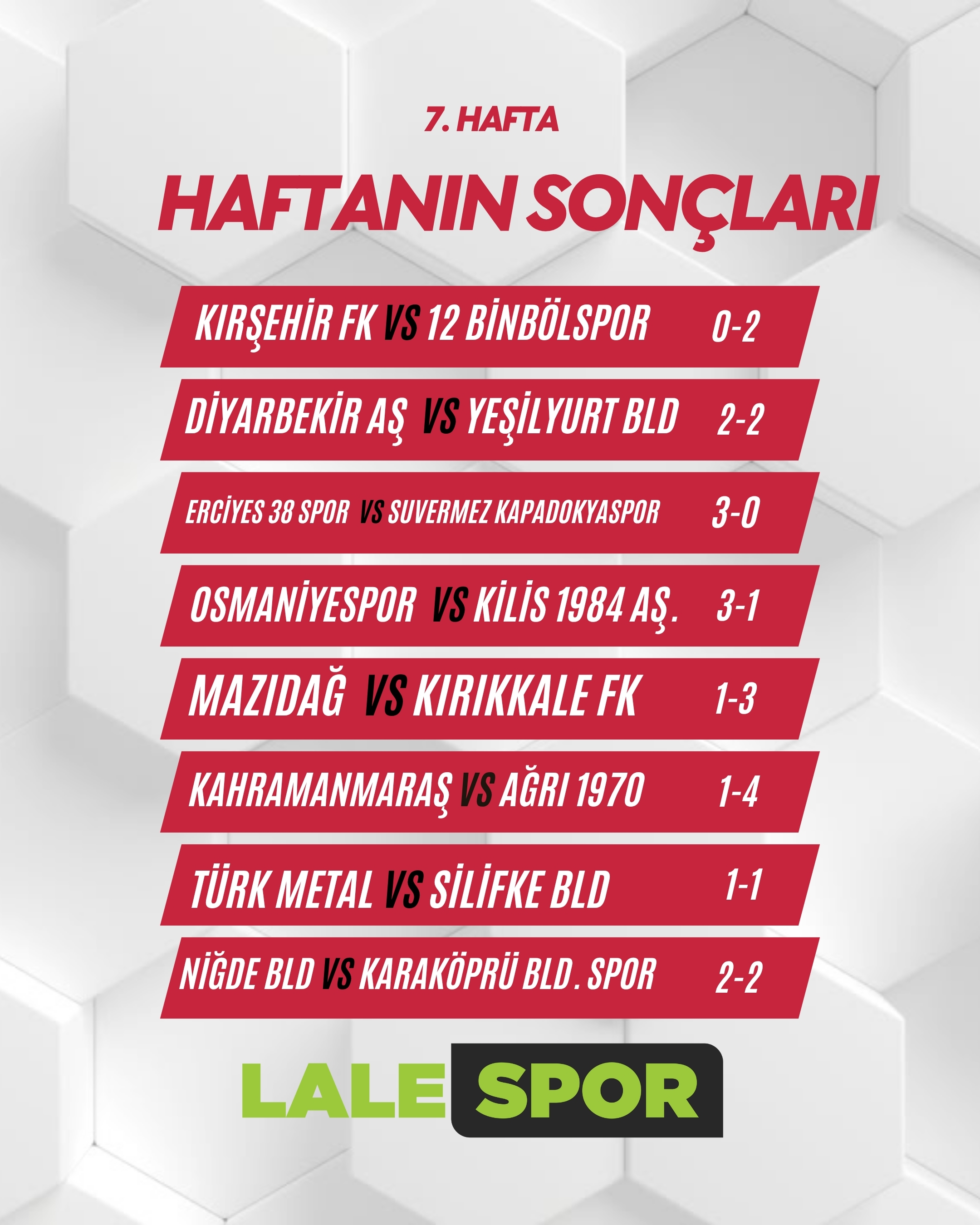 Nesine 3.Lig 2.Grupta 7.hafta sonuçları