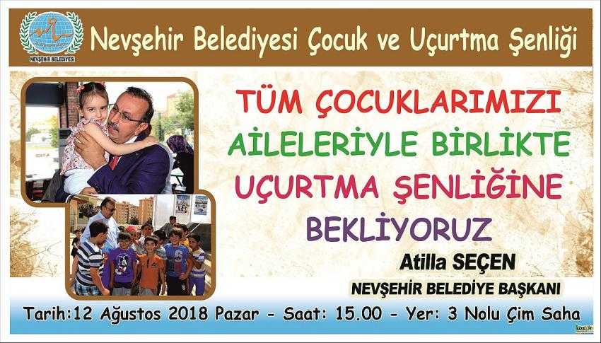 Nevşehir Belediyesi tarafından bu yıl ilki düzenlenecek Çocuk ve Uçurtma Şenliği 12 Ağustos 2018 Pazar Günü, 3. Nolu çim sahada gerçekleştirilecek.