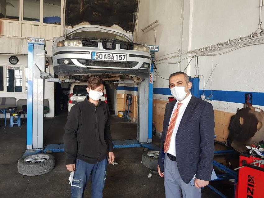 Nevşehir Belediyesi Esnaf Birimi yöneticileri, sanayi sitesindeki esnafları ziyaret ederek maske dağıtımı gerçekleştiriyor. Ziyaretlerde esnafların talep ve önerilerini de dinleyen birim yöneticileri, belediye tarafından gerçekleştirilen çalışmalara ilişkin bilgilendirmelerde bulunuyor.