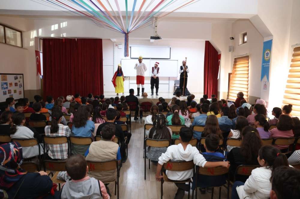 Nar Semih Aktekin Ortaokulu Ömer Halisdemir Konferans Salonu’nda sahnelenen oyunu Nar Barbaros İlkokulu öğrencileri de izledi.