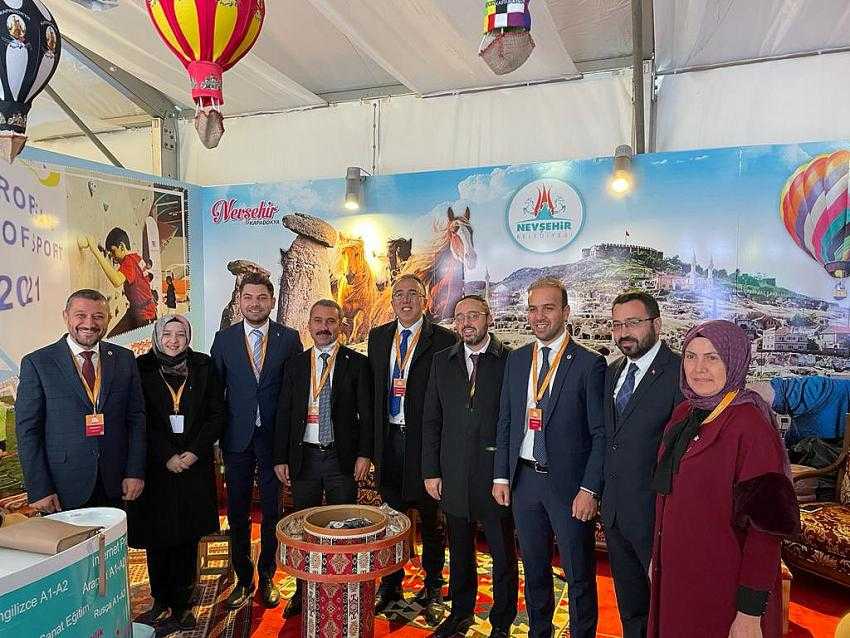 Kapadokya bölgesinin merkezi Nevşehir’den görsellerin ve yöresel el sanatları ürünlerinin yer aldığı stantta ziyaretçilere Nevşehir Belediyesi Kültür ve Sosyal İşler Müdürlüğü ve Gençlik Hizmetleri Müdürlüğü görevlilerince köftür, kabak çekirdeği ve kuru üzüm gibi yöresel ürünler de ikram edildi.