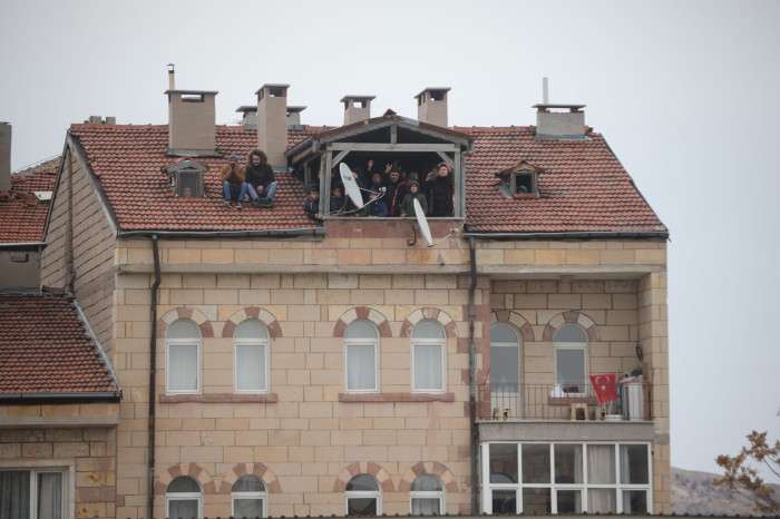 TFF 3.Lig 1.Grupta mücadele eden Nevşehir Belediyespor’un cezası nedeniyle seyircisiz oynadığı mücadeleyi taraftarlar çatıdan izleyerek Nevşehir Belediyespor’a destek oldu.