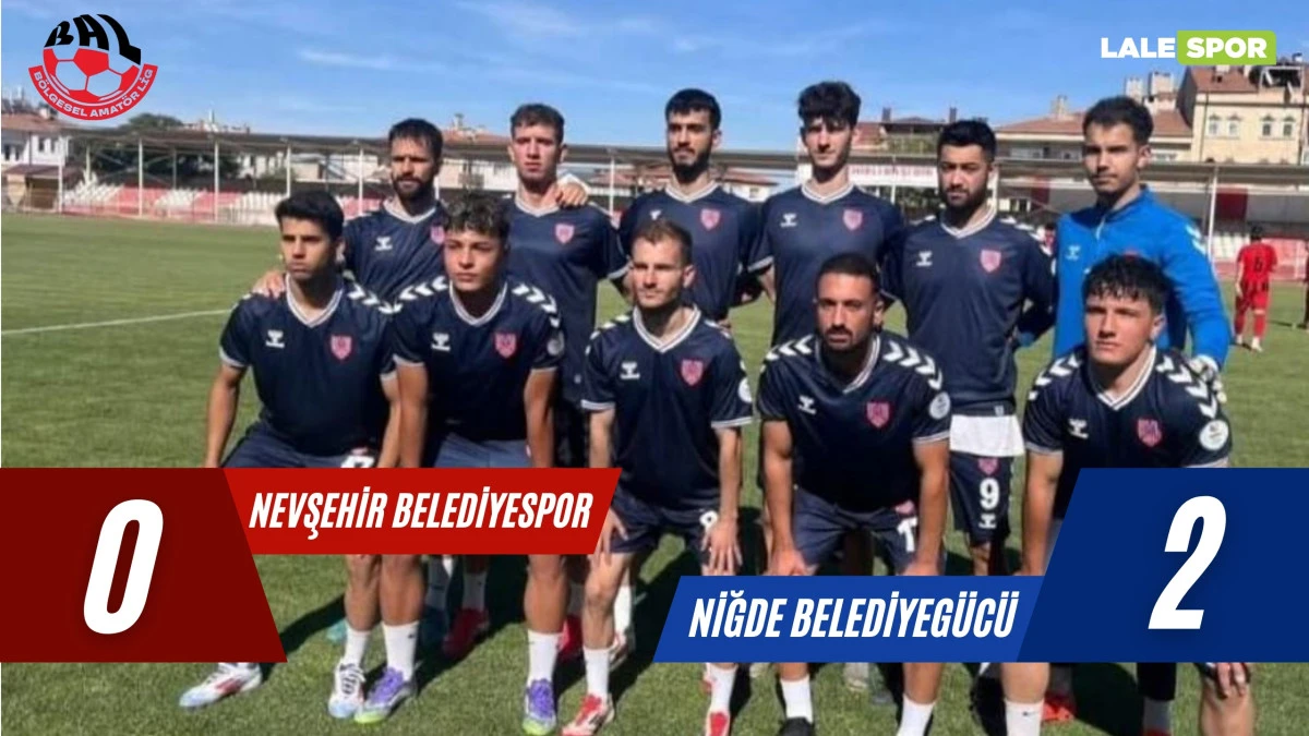 Bölgesel Amatör Lig 6.Grupta mücadele eden Nevşehir Belediyespor ligin 4.haftasında Gazi Stadyumunda Niğde Belediyegücü’nü konuk etti. Karşılaşmaya hızlı başlayan konuk ekip Niğde Belediyespor 5.dakikada Alper’in kaydettiği gol ile maçta 1-0 öne geçti. Karşılaşmanın 9.dakikasında Niğde Belediyegücü Talha Koray’ın kaydettiği gol ile maçta 2-0 öne geçerken ilk yarı da bu skorla sona erdi.