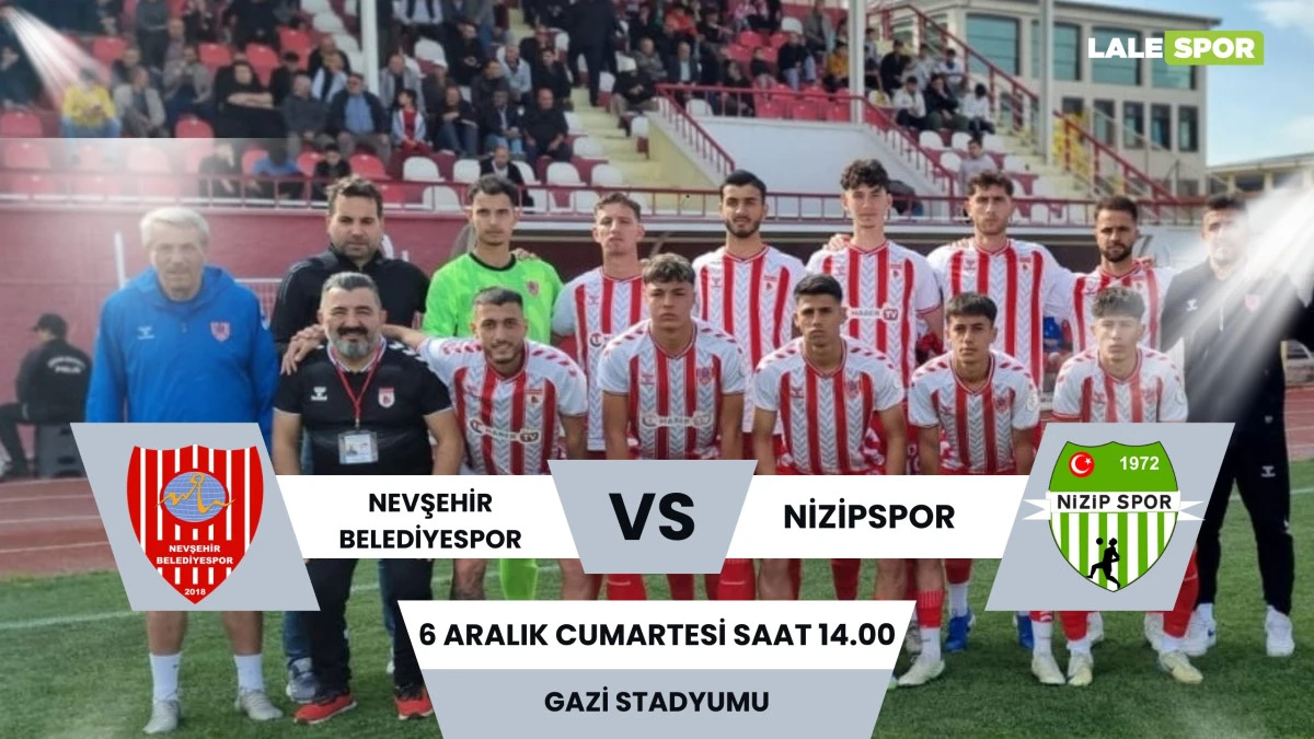 Bölgesel Amatör Lig 6.Grupta mücadele eden Nevşehir Belediyespor ligin 10.haftasında 6 Aralık Cumartesi Gazi Stadyumunda saat 14.00’te oynanacak olan mücadelede Nizipspor ile karşılaşacak. Mücadeleyi Emir Can Karaçalı yönetecekken yardımcılıklarını ise Doğukan Ekinci ve Semra Doğan yapacak.