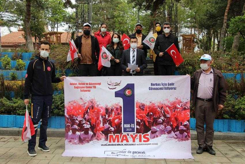1 Mayıs İşçi Bayramı dolayısıyla Nevşehir HAK-İŞ İl Başkanlığı tarafından Nevşehir Gülbahçe Park önünde basın açıklaması düzenlendi. HAK-İş İl Başkanı Muhammed Fatih Mutlu burada yaptığı açıklamada, "Bizler, Türkiye'nin bütün emekçileri, kadınları, erkekleri, gençleri, emeklileri, yaşlıları, engellileri, işsizleri, yoksulları, meslek sahipleri olarak; tüm dünya emekçileriyle birlikte bugün yine 1 Mayıs'ta birlikteyiz" dedi. Mutlu, "HAK-İŞ olarak, 1 Mayıs ruhunu en güçlü şekilde yansıtmak için, ekranlarda, dijital platformlarda, illerde ve her yerdeyiz. 1 yılı aşkın süredir devam eden salgın nedeniyle emekçi kardeşlerimizle omuz omuza alanlarda olamasak da, 1 Mayıs Emek ve Dayanışma Gününde, emekçilerin hakkı için, sağlık, huzur ve refahı için, iş güvencesi için, sorunların çözümü için taleplerimizi tüm dijital platformlarda sunuyoruz. HAK-İŞ olarak, ülkemizin bu salgını en kısa zamanda atlatmasını temenni ediyor, Ramazan ayının milletimiz ve tüm İslam alemi için hayırlara vesile olmasını diliyoruz. Biliyoruz ki dünyamız bir, gayemiz bir. Ülkemizin bugünü ve geleceği için, ülkemizin bütünlüğü, insanlarımızın birlik, beraberlik ve kardeşliği için, talep, teklif ve beklentilerimizin karşılanması için meydanlardayız ve ekranlardayız. HAK-İŞ olarak asgari ücretin insan onuruna yakışır olmasını istiyoruz. Kayıt dışı istihdamın önlenmesini, istihdamın artırılmasını ve yoksulluğun önlenmesini istiyoruz. Sendikal örgütlenmenin teşvik edilmesini istiyoruz. İş yerlerinde iş sağlığı ve güvenliği önlemlerinin artırılmasını istiyoruz. Biz çalışanlar, emekçiler olarak; milli gelirden, ekonomik büyümeden ve refah artışından hak ettiğimiz payı istiyoruz. İnsanı merkeze alan, daha adil ve sürdürülebilir bir dünya ve Türkiye istiyoruz. Emekli aylığı alt sınırının asgari ücret düzeyine yükseltilmesini talep ediyoruz” diye konuştu.