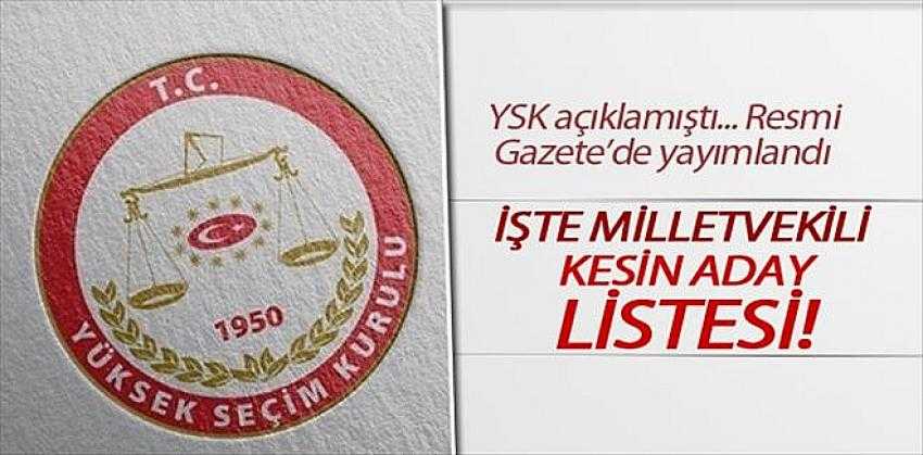 Yüksek Seçim Kurulu tarafından 24 Haziran Pazar günü yapılacak olan 27. Dönem milletvekilliği seçimleri öncesinde partilerin kesin aday listeleri Resmi Gazetede yayımlandı.