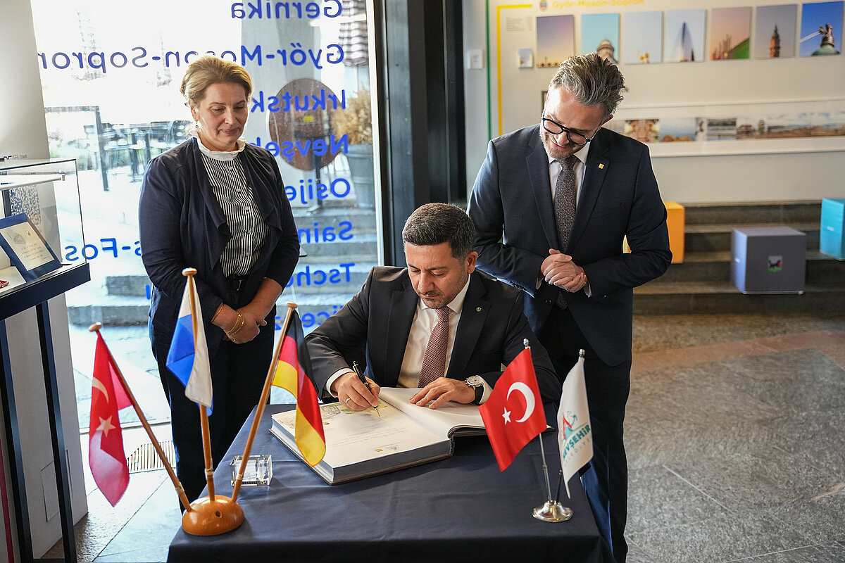 Başkan Arı, dostluk anlaşmasının 25’inci yıldönümü dolayısıyla Pforzheim Şehri Özel Altın Kitap imza törenine katılarak kitabı imzaladı.