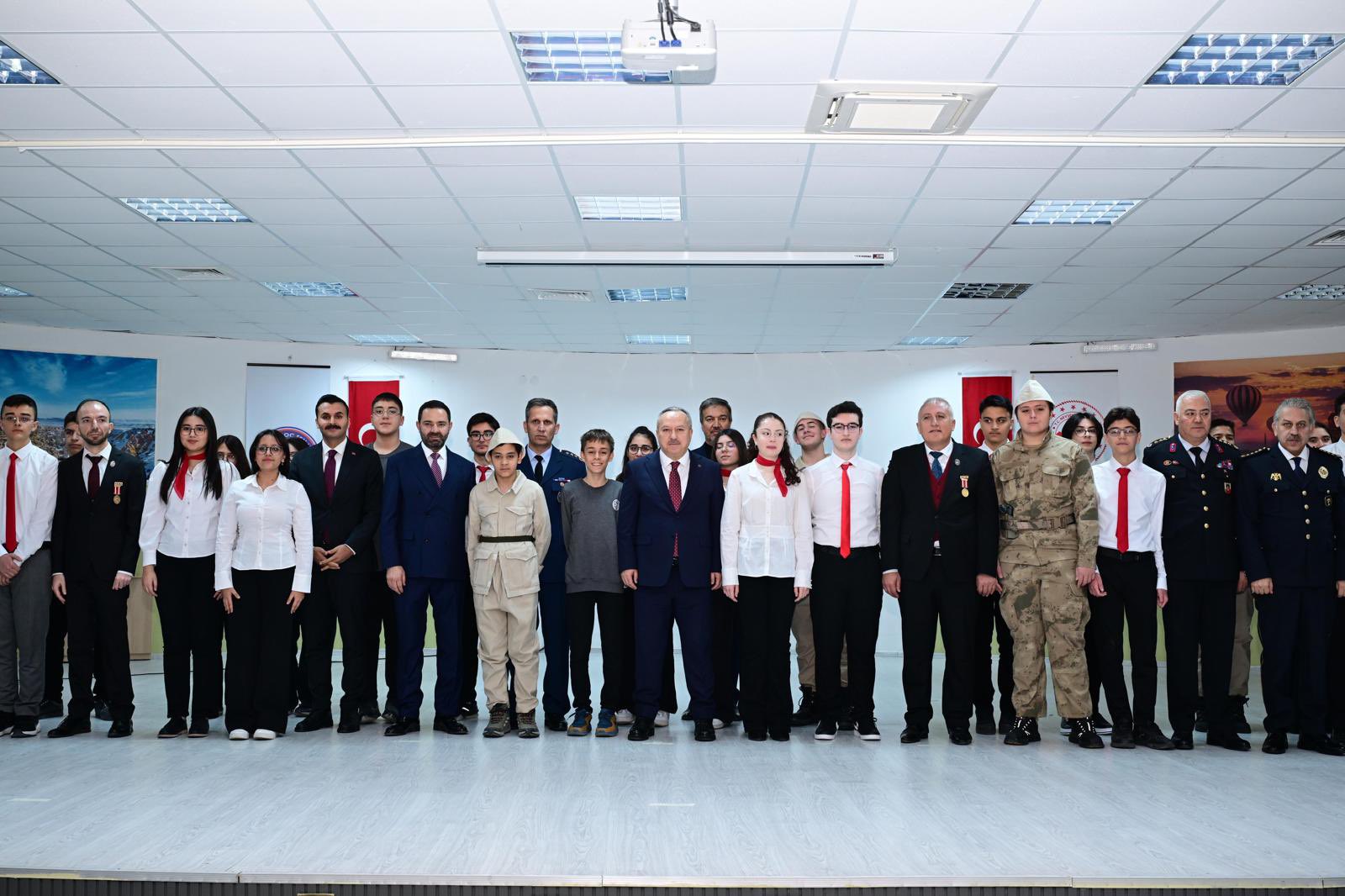 Nevşehir Valisi Ali Fidan il protokol ile birlikte Diriliş Kız Anadolu İmam Hatip Lisesi Konferans salonunda Fevzi Dirikoç Fen Lisesi öğretmen ve öğrencileri tarafından hazırlanan 18 Mart Şehitleri Anma Günü ve Çanakkale Deniz Zaferi’nin 111.yıldönümü dolayısıyla düzenlenen programa katıldı.