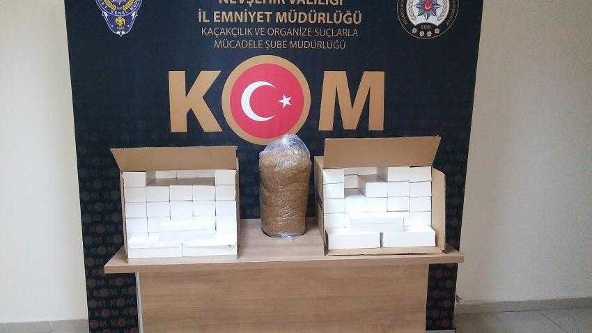 Nevşehir İl Emniyet Müdürlüğü Kaçakçılıkla Mücadele Şube Müdürlüğü (KOM) ekipleri tarafından 5 kilogram kıyılmış tütün ile 20 bin boş makaron ele geçirildi.