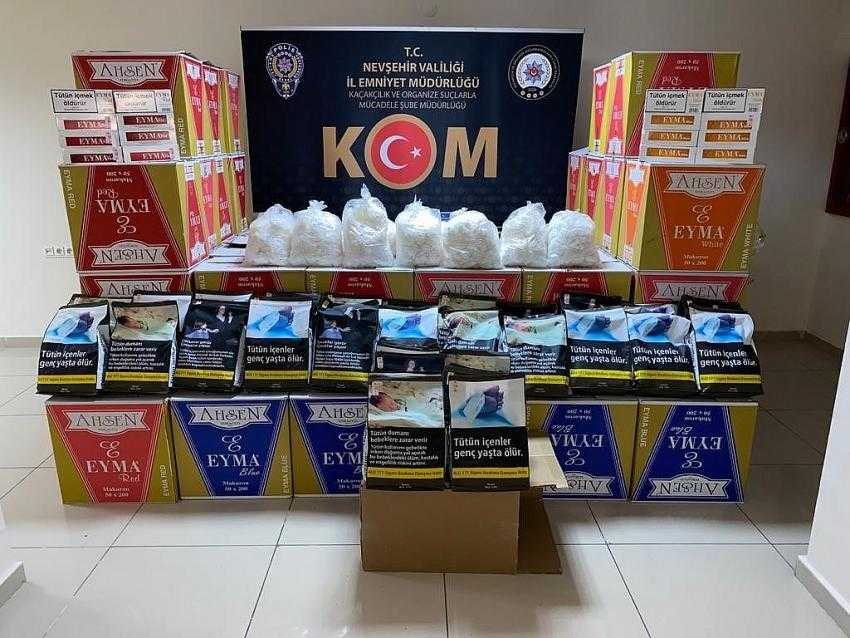 Nevşehir İl Emniyet Müdürlüğü Kaçakçılık ve Organize Suçlarla Mücadele Şube Müdürlüğü ekipleri tarafından 670 bin makaron, 30 kilogram tütün ve 75 bin 600 adet sigara filtresi ele geçirildi.