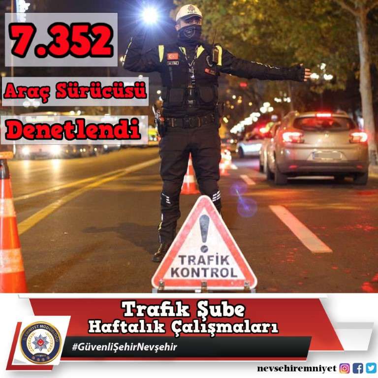 Nevşehir Valiliği koordinesinde vatandaşların huzur içerisinde seyahat etmeleri için Nevşehir Emniyet müdürlüğü son bir hafta içerisinde yapmış olduğu çalışmalarda 7bin 352 araç denetledi.