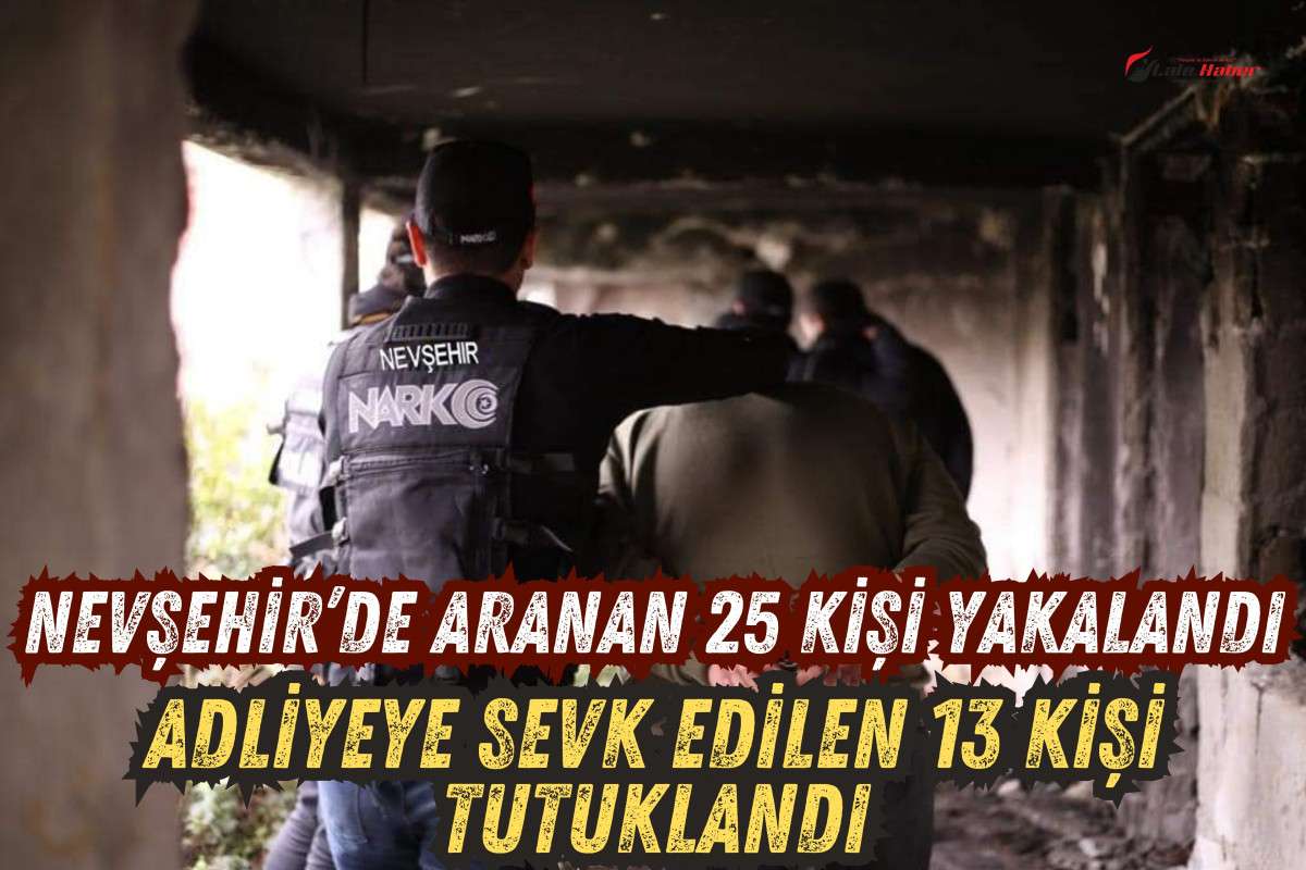Asayiş Şube Müdürlüğü ekiplerince aranan şahısların yakalanmasına yönelik yapılan çalışmalarda, 15 yıl kesinleşmiş hapis cezası bulunan 1 kişi, 8 yıl 7 ay kesinleşmiş hapis cezası bulunan 1 kişi, 4 yıl 2 ay kesinleşmiş hapis cezası bulunan 2 kişi olmak üzere çeşitli suçlardan aranan 25 kişi yakalanarak gözaltına alındı. Emniyetteki işlemlerinin tamamlanmasının ardından adliyeye sevk edilen 13 kişi tutuklanarak Nevşehir E Tipi Kapalı Cezaevi’ne gönderildi.