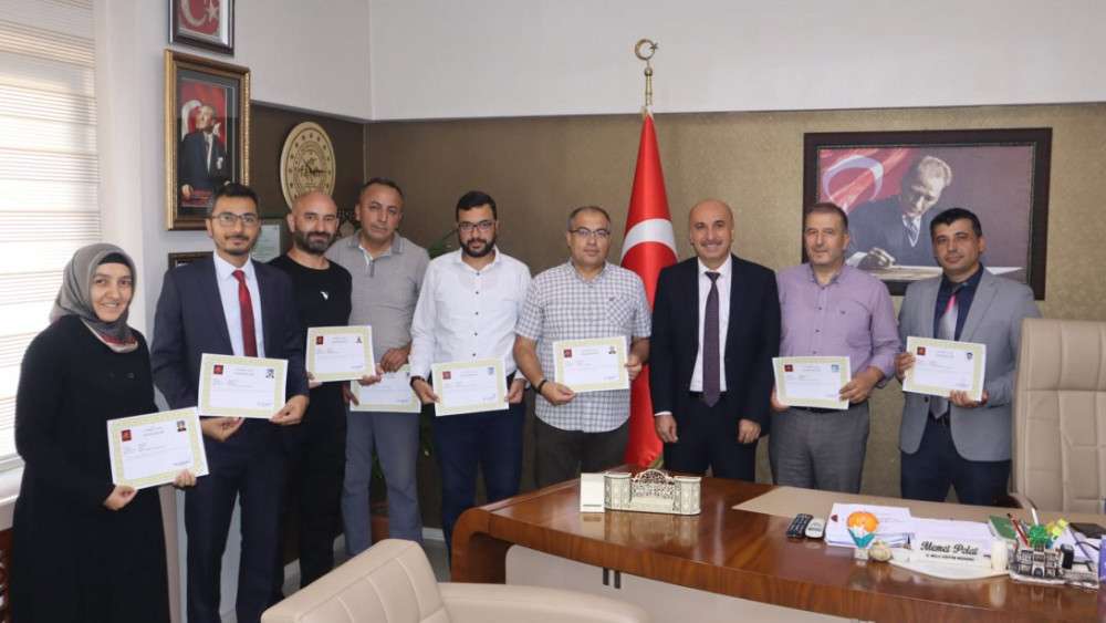 NEVŞEHİR(MHA) Nevşehir İl Milli Eğitim Müdürlüğü bünyesinde görev yapan okul yöneticisi ve öğretmenler görevlerinde göstermiş oldukları özverili ve gayretli çalışmalarından dolayı İl Milli Eğitim Müdürü Memet Polat tarafından verilen "Başarı Belgesi" ile ödüllendirildi.