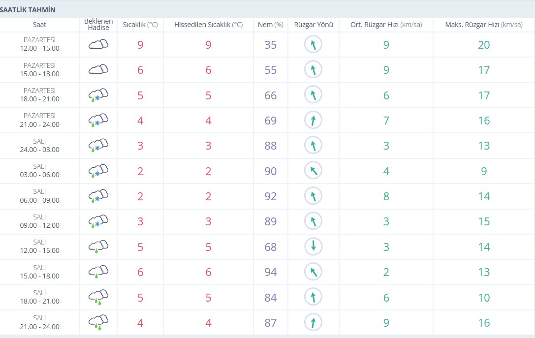 Bugün karla karışık yağmur yağışı ile birlikte hava sıcaklığı 2 dereceye kadar düşmesi tahmin ediliyor.