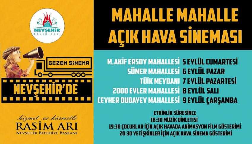 Yeni tip koronavirüs (Kovid-19) tedbirlerine uygun hale getirilerek Anadolu yolculuğuna çıkan Gezen Sinema Tırı, Nevşehir’de çocukları ve yetişkinleri açık havada ücretsiz sinemayla buluşturuyor. Nevşehir Belediyesi ev sahipliğinde gerçekleştirilecek etkinlikler ilk olarak 5 Eylül Cumartesi günü Mehmet Akif Ersoy Mahallesi’nde başlayacak.