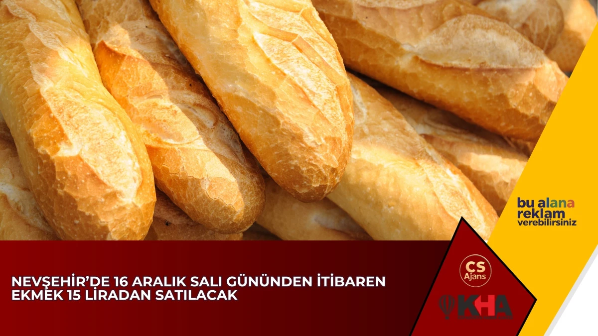 Nevşehir’de 16 Aralık Salı gününden itibaren geçerli olmak üzere 12 lira 50 kuruştan satışa sunulan 200 gram ekmek 15 TL’den satışa sunulacak.