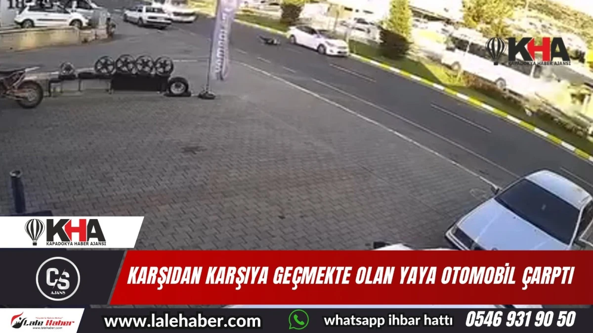 Nevşehir’de bugün akşam saatlerinde bir otomobilin karşıdan karşıya geçmekte olan yayaya çarpma anı bir işyerine ait güvenlik kamerasına saniye saniye yansıdı.