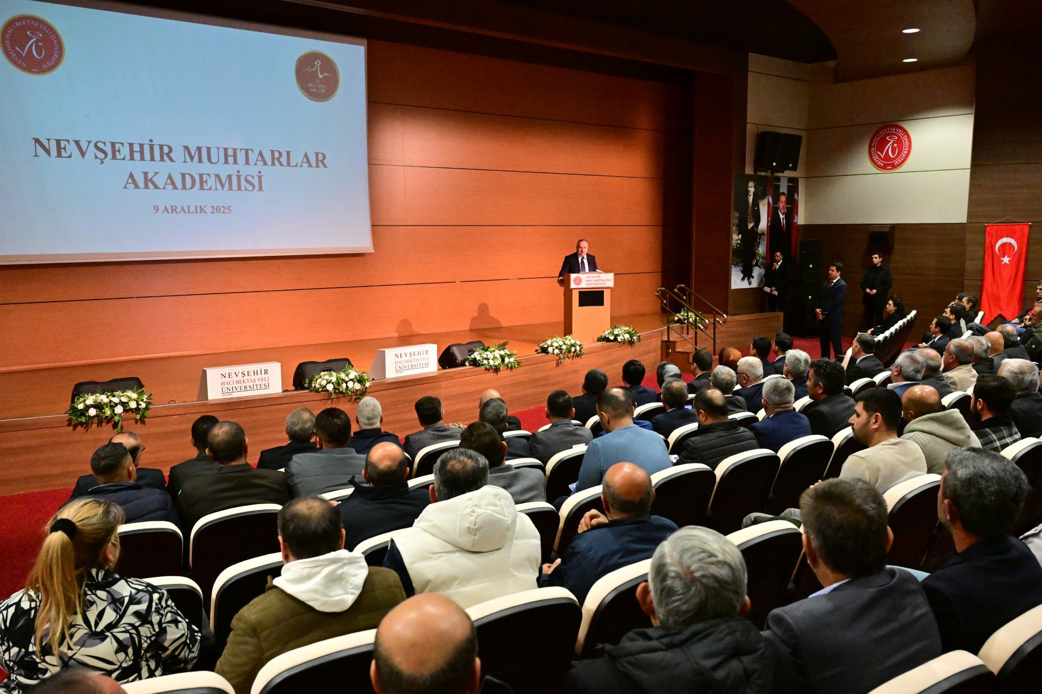 Nevşehir Hacı Bektaş Veli Üniversitesi’nde 2025 Aile Yılı temalı Muhtarlar Akademisi programı düzenlendi. Düzenlenen programa Vali Ali Fidan’ın yanı sıra NEVÜ Rektörü Prof. Dr. Semih Aktekin, İl Özel İdaresi Genel Sekreteri Hüseyin Çam, İl Genel Meclis Başkanı Serkan Feralan, İl Emniyet Müdürü Serkan Karaman, İl Jandarma Komutanı Jandarma Kıdemli Albay Mehmet Çelik’in yanı sıra kaymakamlar, daire müdürleri ve muhtarlar katıldı.