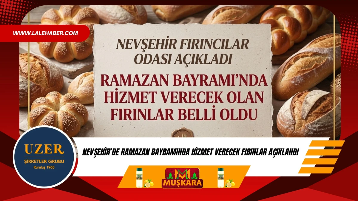 Nevşehir’de Ramazan Bayramı dolayısıyla Fırıncılar Odası tarafından bayram boyunca hizmet verecek olan fırınlar açıklandı.