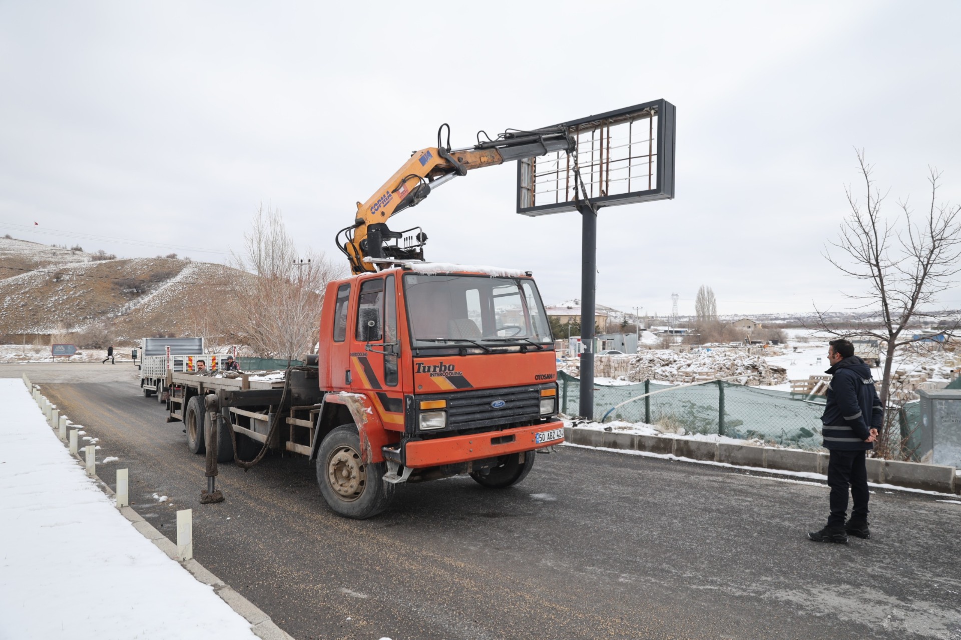 Nevşehir Belediyesi kent estetiği, yaya güvenliği ve düzeni artırmaya yönelik sahibine ulaşılamayan ve atıl vaziyette bulunan totem ve levhaları kaldırmaya başladı.