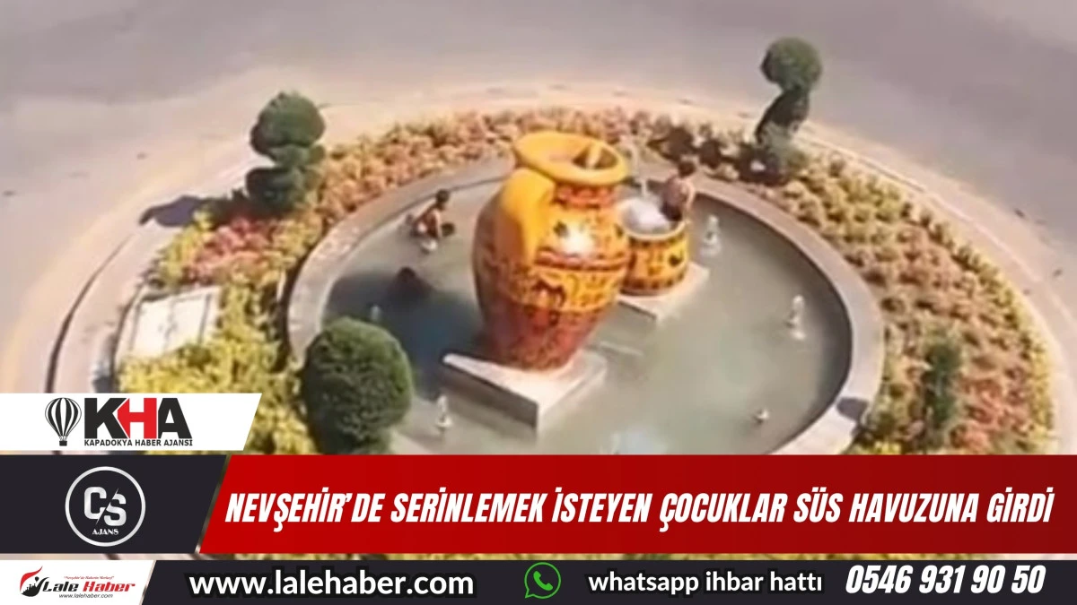 Nevşehir’de hava sıcaklıklarının artmasıyla birlikte Suriyeli çocuklar TÜİK kavşağında bulunan süs havuzuna girerek serinlemeye çalıştı. Çevreden geçen vatandaşlar tarafından o anlar ise cep telefonu ile görüntülendi.