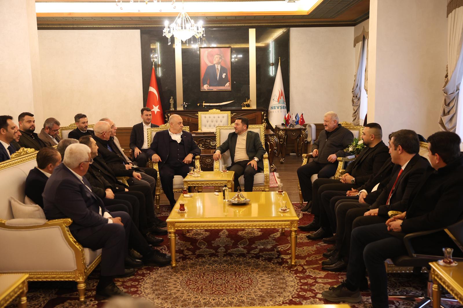 Nevşehir Ticaret ve Sanayi Odası Başkan Adayı Mehmet Ali Öbekli ve beraberindeki heyet Nevşehir Belediye Başkanı Rasim Arı’yı ziyaret etti.