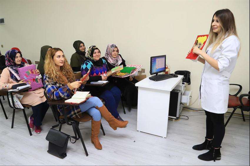 Anne, anne adayı ve okul öncesi çocuk gelişimi konusunda kendilerini geliştirmek isteyenlerin desteklenmesinin amaçlandığı Okul Öncesi Çocuk Gelişimi ve Eğitimi kursuna katılan kursiyerler arasında daha sonra yapılacak sınavda başarılı olanlara sertifika verilecek.