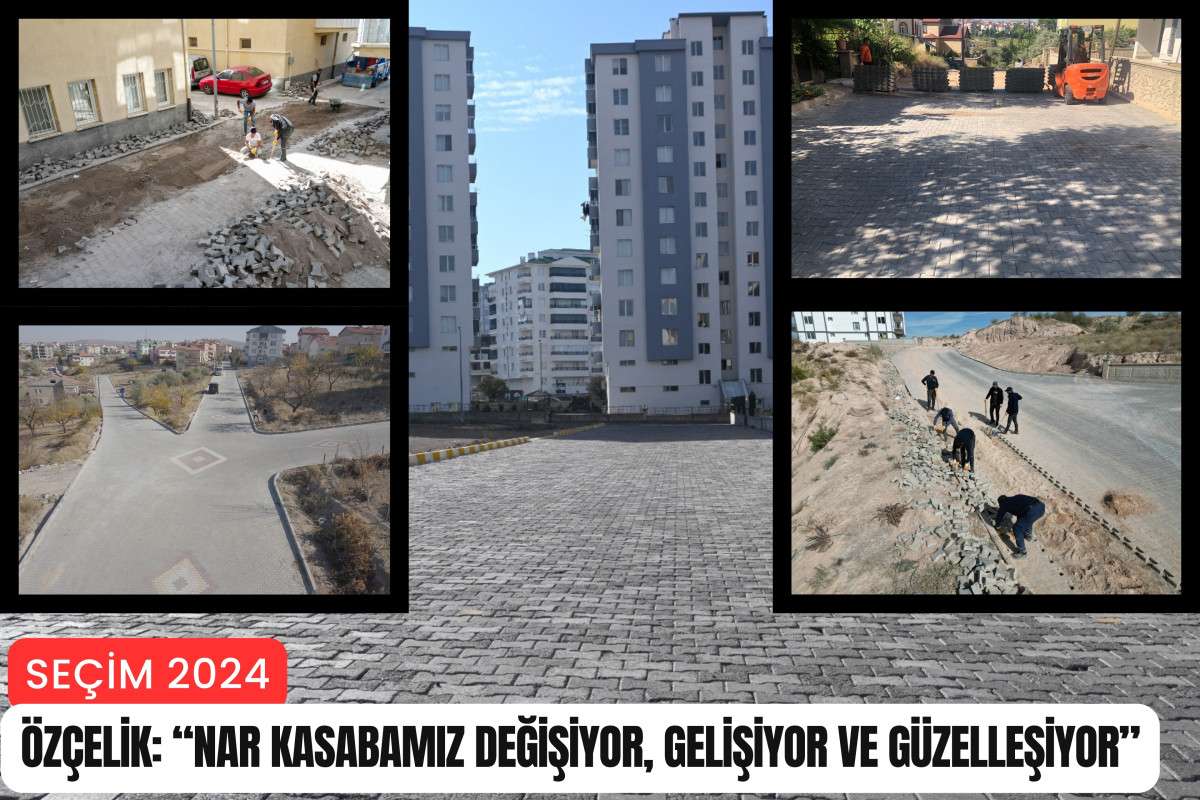 Nevşehir'in son yıllarda tartışmasız parlayan yıldızı olan Nar kasabasında Başkan Özçelik'in girişimleriyle toplamda 350 bin metrekare kilitli parke taş döşenen yol çalışmaları kapsamında kasaba içinde yollar daha güvenli ve modern bir görünüme kavuştu.