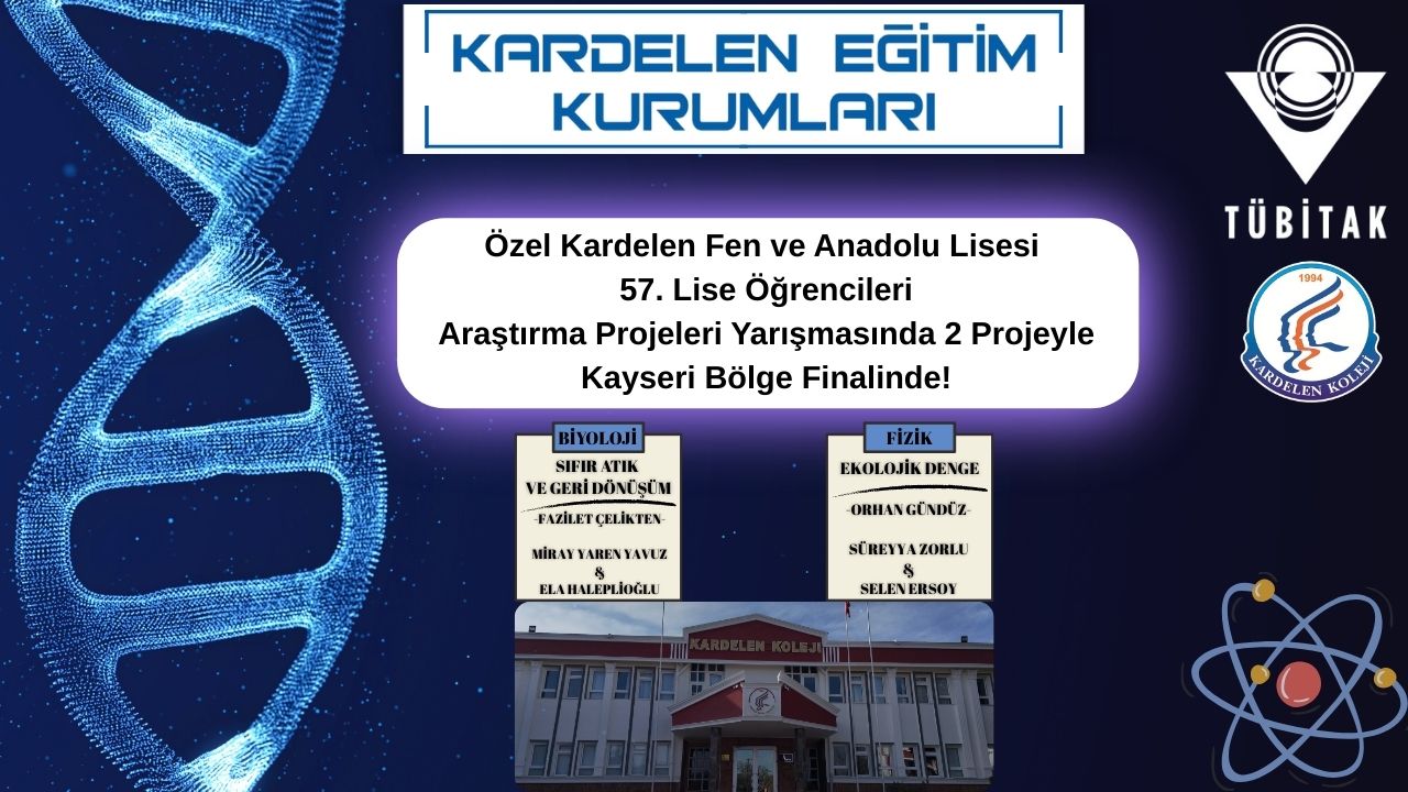 TÜBİTAK Bilim İnsanı Destek Programları Başkanlığı tarafından düzenlenen proje yarışmasında Kardelen Fen Lisesi, 2 projeyle finale kalarak önemli bir başarıya imza attı. Kardelen Fen Lisesi, Nevşehir’de finallere kalan tek özel okul oldu.