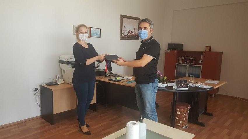 Cübbeleri ve kepleri Derinkuyu Halk Eğitim Merkezi Müdürü Faruk Çetin, Şerife Bacı Anaokulu yeni müdiresi Ayşegül Kaymakçı'ya teslim etti.